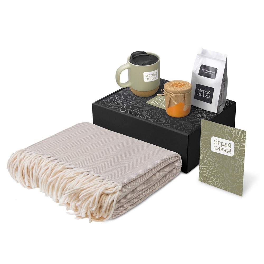 - Плед 100% хлопок/кружка керамика/пробка/чай пластик/мешок нектаный материал (спанбонд)/коробка картон