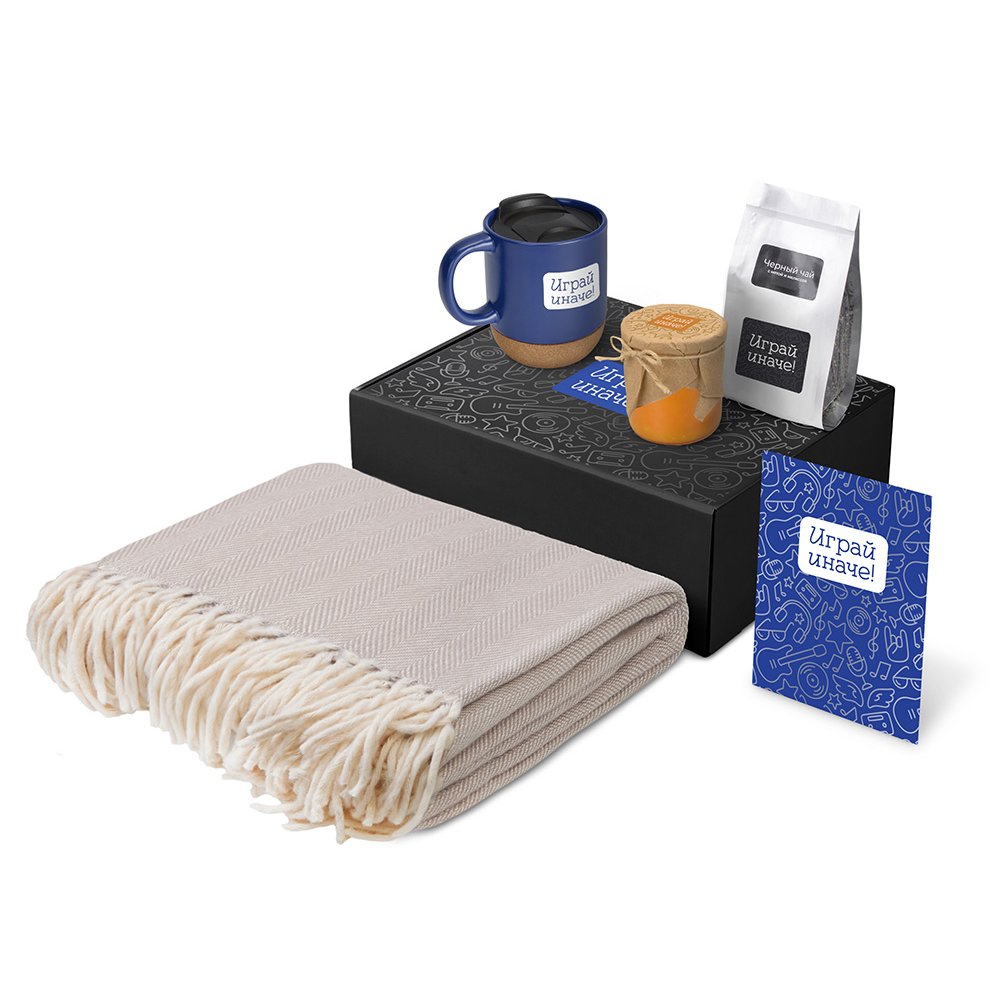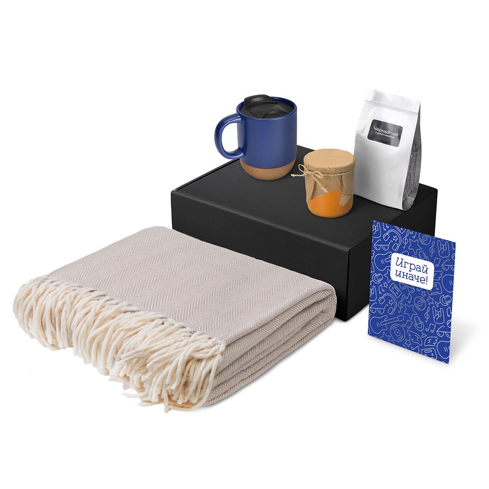 - Плед 100% хлопок/кружка керамика/пробка/чай пластик/мешок нектаный материал (спанбонд)/коробка картон