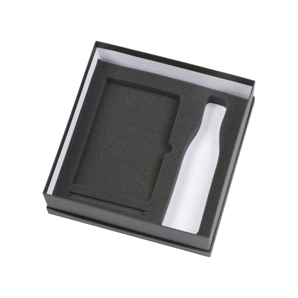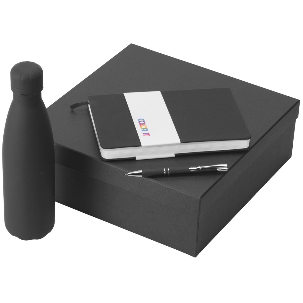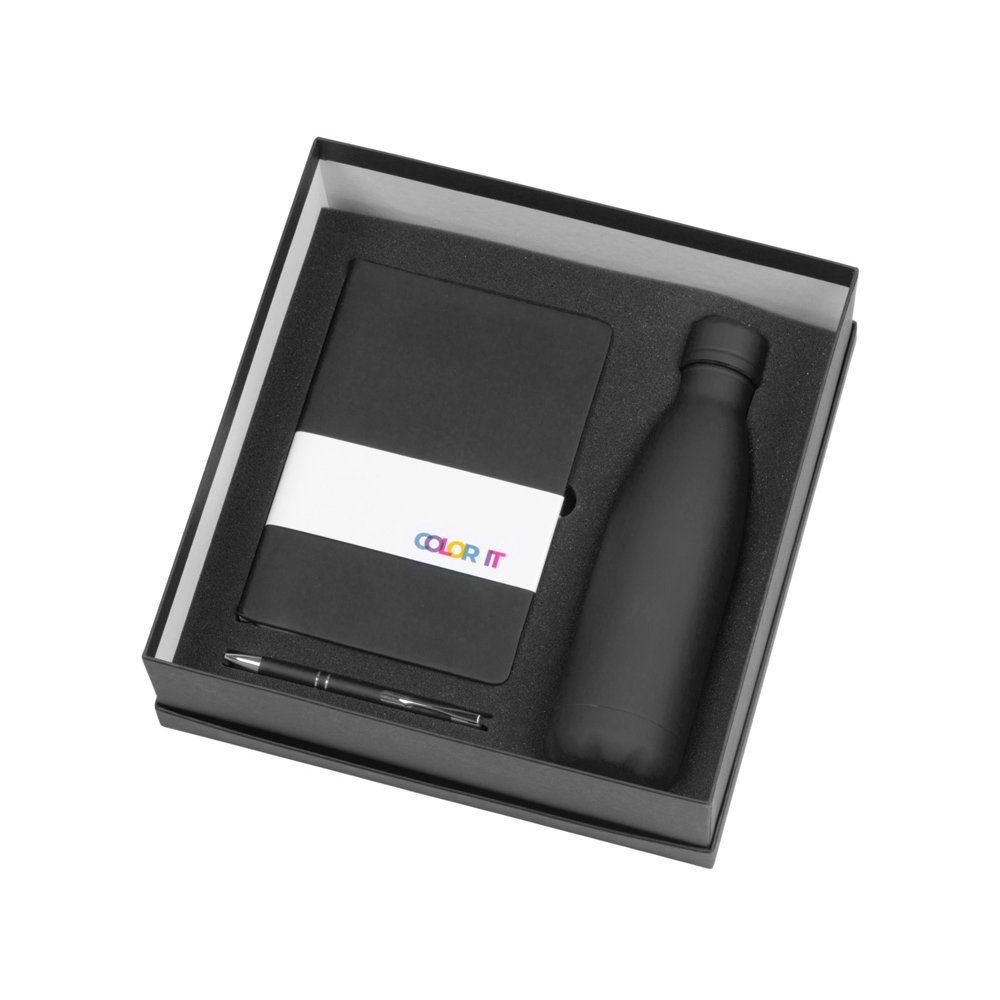 - Блокнот искусственная кожа с покрытием soft touch/ручка алюминий с покрытием soft touch/термобутылка нержавеющая cталь с покрытием soft touch/коробка картон