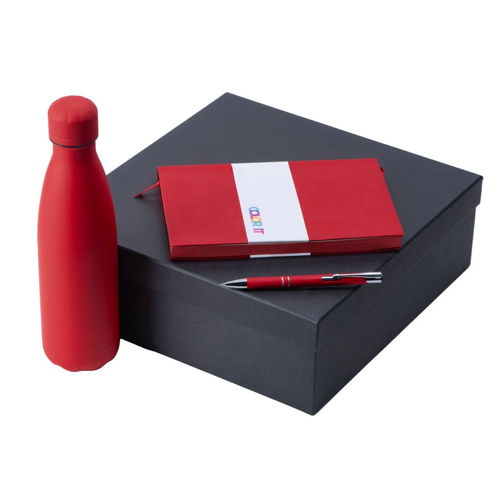 - Блокнот полиуретан с покрытием софт тач/картон/ручка алюминий с покрытием soft touch/термобутылка нержавеющая cталь с покрытием soft touch/коробка картон