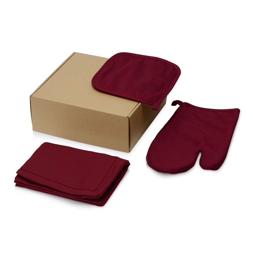 - С подарочным набором Brand Chef любой повар, даже начинающий, имеет все шансы на успех: по крайней мере, обжечься или запачкать одежду благодаря прихваткам и фартуку точно не выйдет. Фартук имеет карман на животе, на который производится печать, а также поле для нанесения на груди. Посадку фартука можно регулировать при помощи ремешка вокруг шеи. - Прихватка и рукавичка снабжены удобными петельками, за которые их можно подвесить на крючки - Нанесение возможно не только на все компоненты набора, но и на подарочную коробку - Крафтовая коробка решает вопрос упаковки набора
