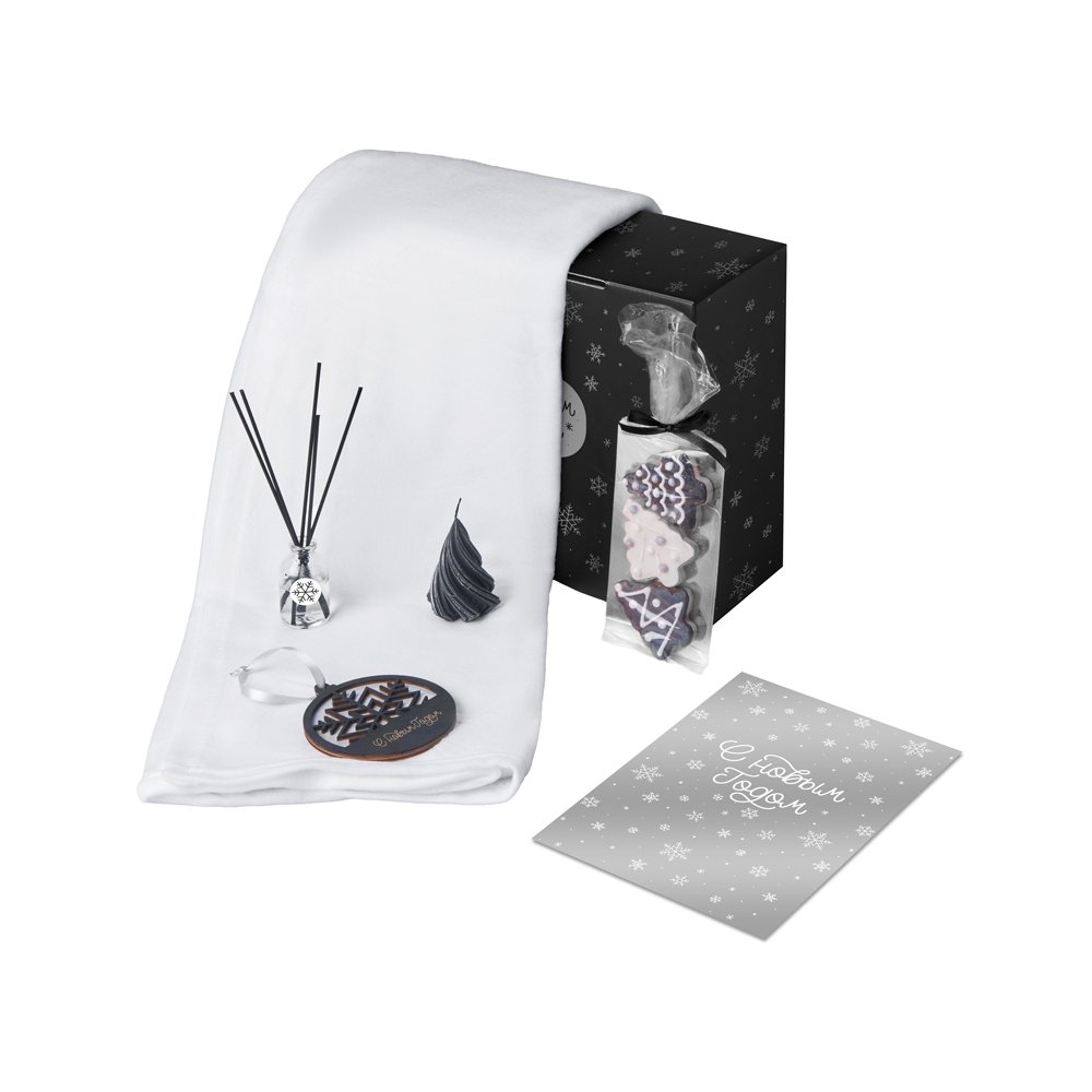 - Плед флис 100% полиэстер; подвеска березвовая фанера; открытка бумага; мешок нетканый материал (спанбонд)