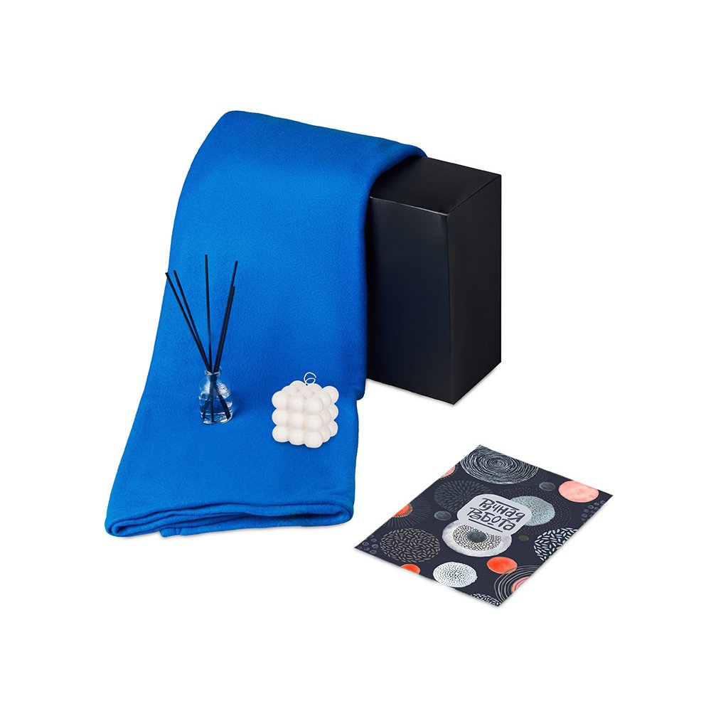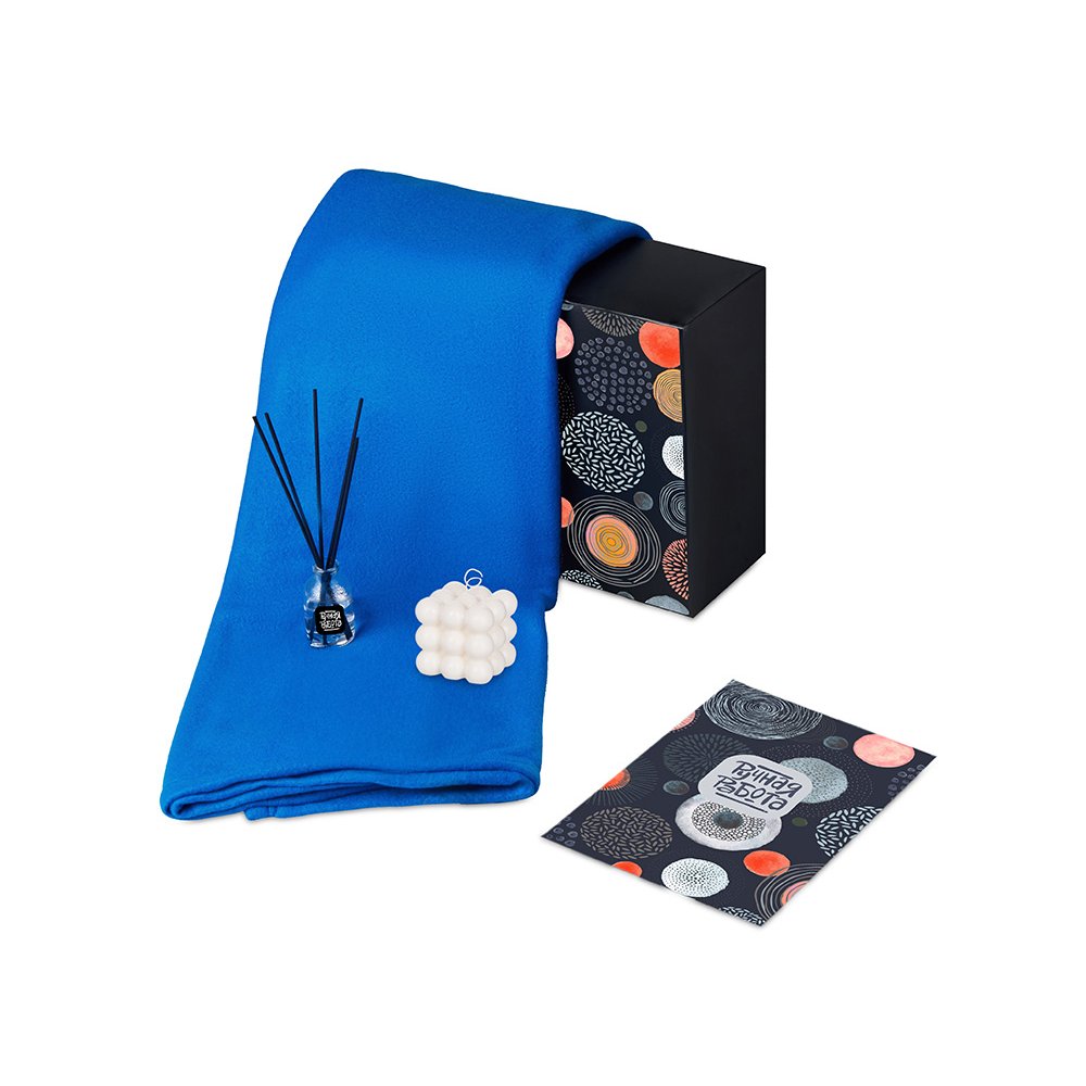 - Плед флис/полиэстер/диффузор стекло/свеча 90% парафин очищенный/10% соевого воска/фитиль хлопковый/миндаль пластик/мешок нетканый материал (спанбонд)/коробка картон