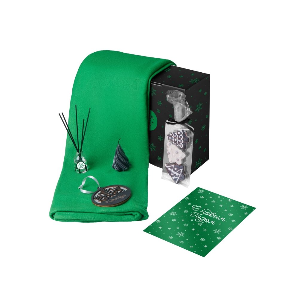 - Плед флис 100% полиэстер; подвеска березвовая фанера; открытка бумага; мешок нетканый материал (спанбонд)