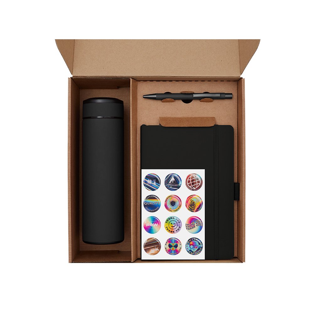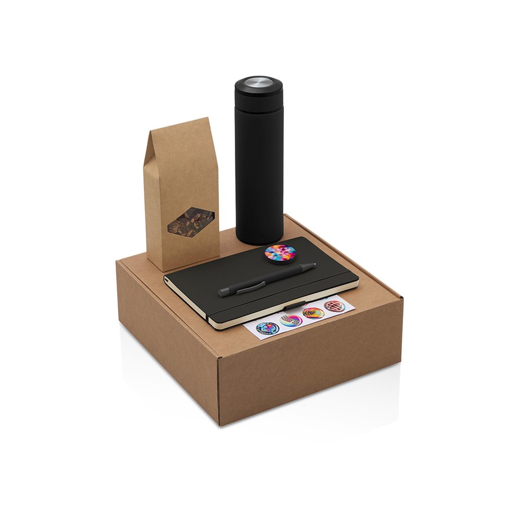 - Набор "Warmpage" станет отличным подарком для сотрудников, клиентов и партнёров, подчеркнёт внимание к их комфорту и заботу о деталях. Он уместен как корпоративный подарок на праздники, юбилеи и деловые мероприятия, так и в качестве welcome-набора для новых коллег. Набор объединяет всё необходимое для комфортного и уютного рабочего дня: Блокнот для идей, заметок и планов на день; Ручка, которая всегда под рукой; Термос, объёмом 420 мл. позволит любимому напитку всегда оставаться горячим; Чай «Глинтвейн», который подарит энергию и настроение; Попсокет для удобного удержания смартфона и комфортного использования; Набор стикеров — для ярких акцентов и персонализации вещей. Универсальный ложемент обеспечивает аккуратное размещение и надёжную фиксацию элементов, делая набор эффектным и презентабельным при вручении. Дополнительное преимущество — набор доступен в конструкторе наборов: компоненты можно заменить и собрать индивидуальный вариант под стиль компании или вкусы получателя.