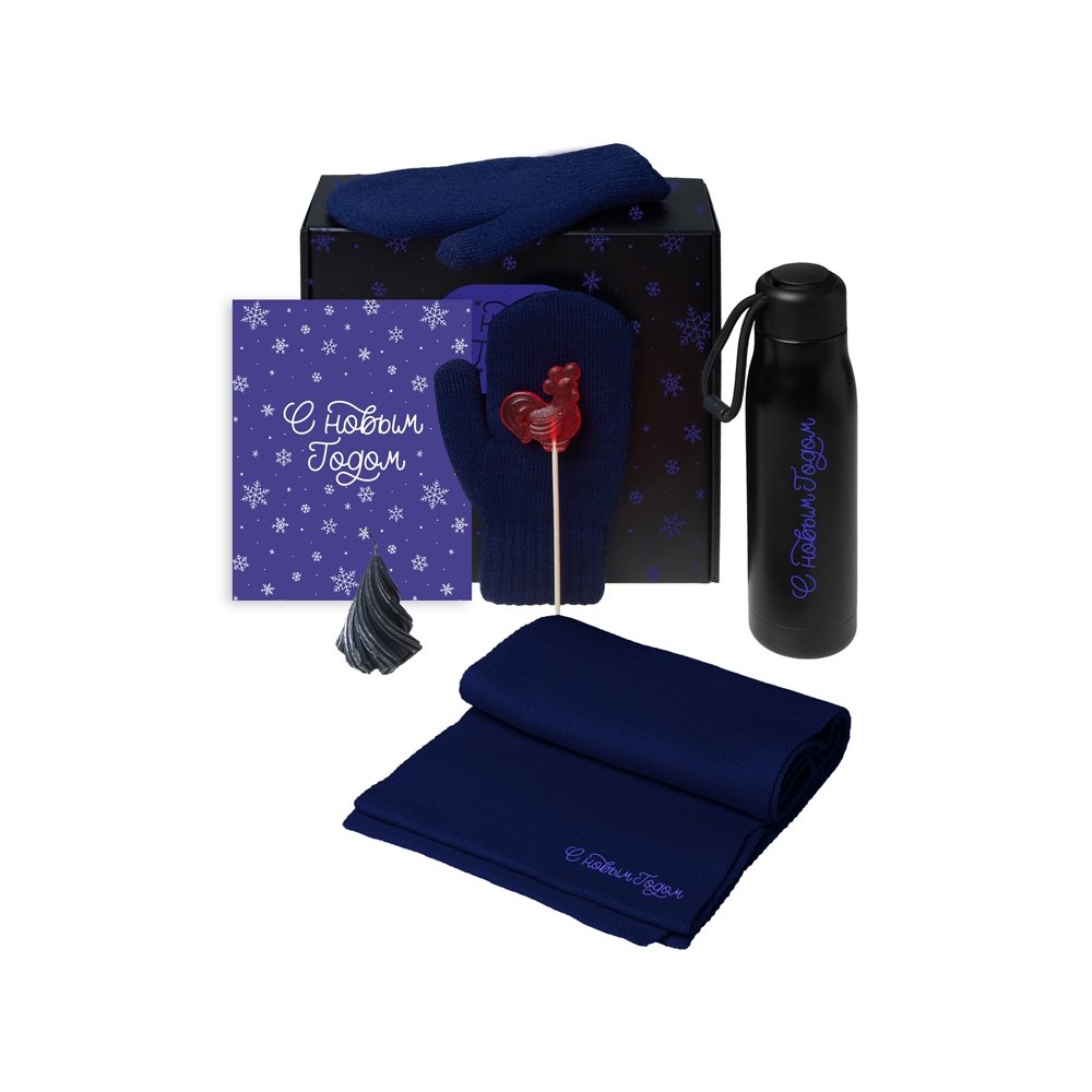 - Варежки 100% акрил; шарф 100% акрил; термос нержавеющая сталь; открытка бумага; мешок нетканый материал