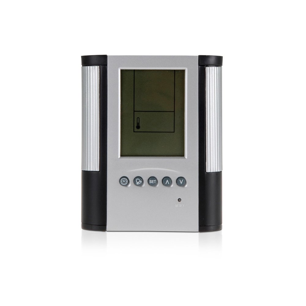 - Чрезвычайно практичный элемент Вашего рабочего стола подскажет время, температуру и даже дату, а ещё вместит в себя канцелярские принадлежности. Часы оснащены будильником. Полный порядок на столе плюс комфорт за приемлемую цену.