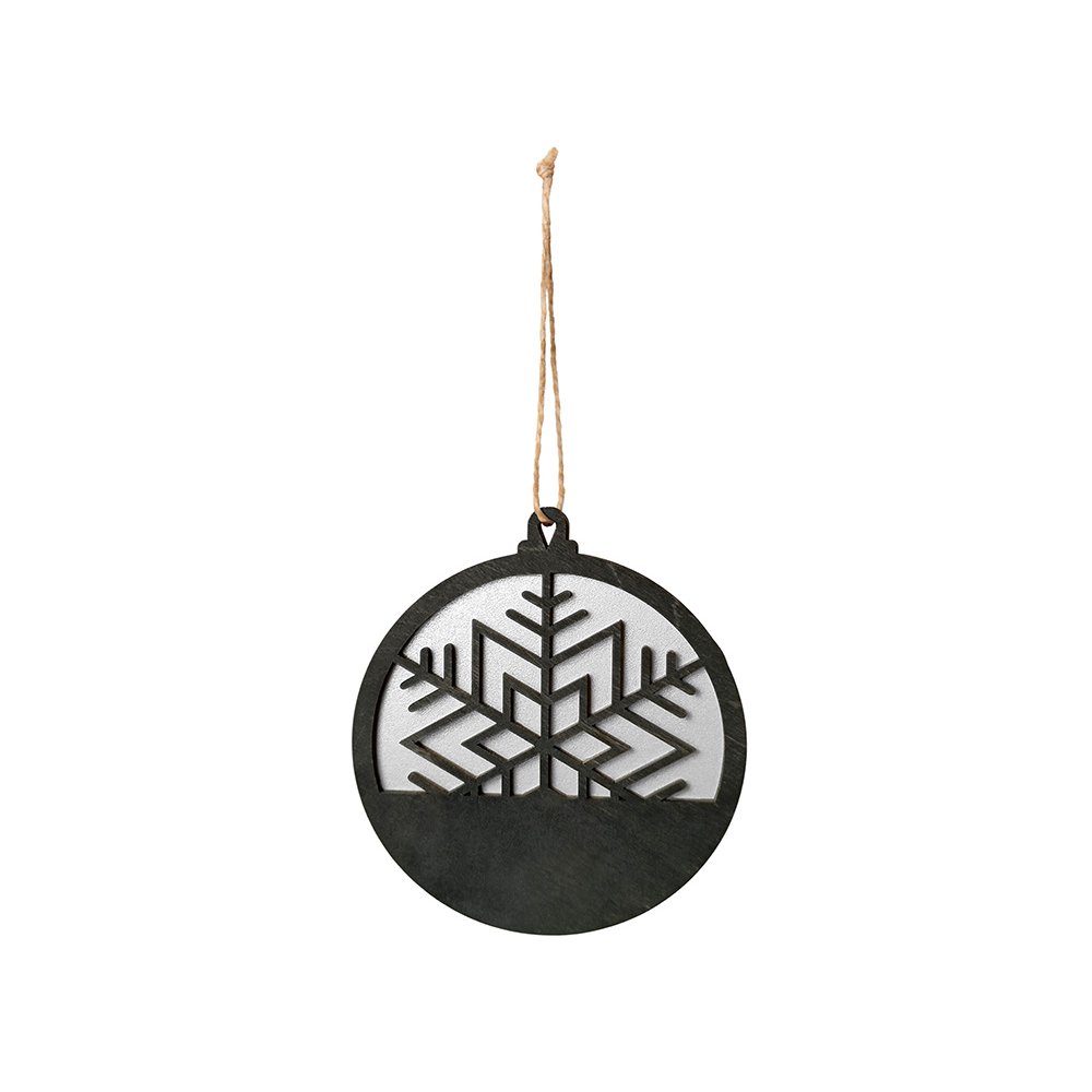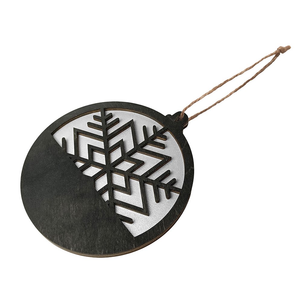 - Стильная и минималистичная подвеска в форме снежинки выполнена из натуральной березовой фанеры. Сочетание черного и серебристого оттенков создаёт ощущение зимнего холода и утончённой простоты. Идеально подходит для украшения интерьера, ёлки или упаковки подарка. Такой сувенир подчеркнёт внимание к деталям и станет оригинальным акцентом в корпоративном или праздничном наборе.