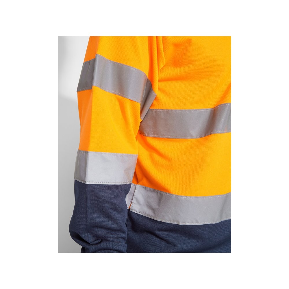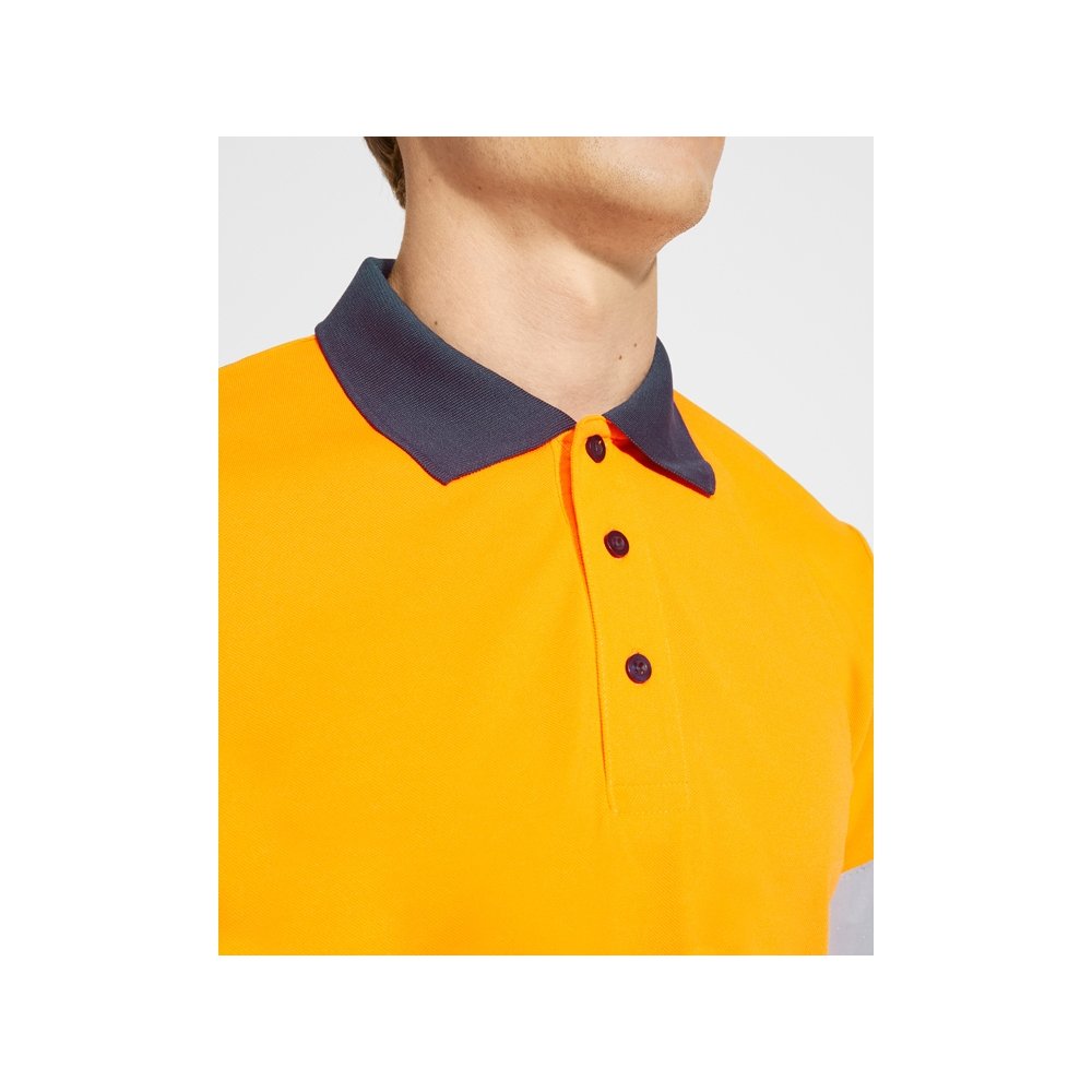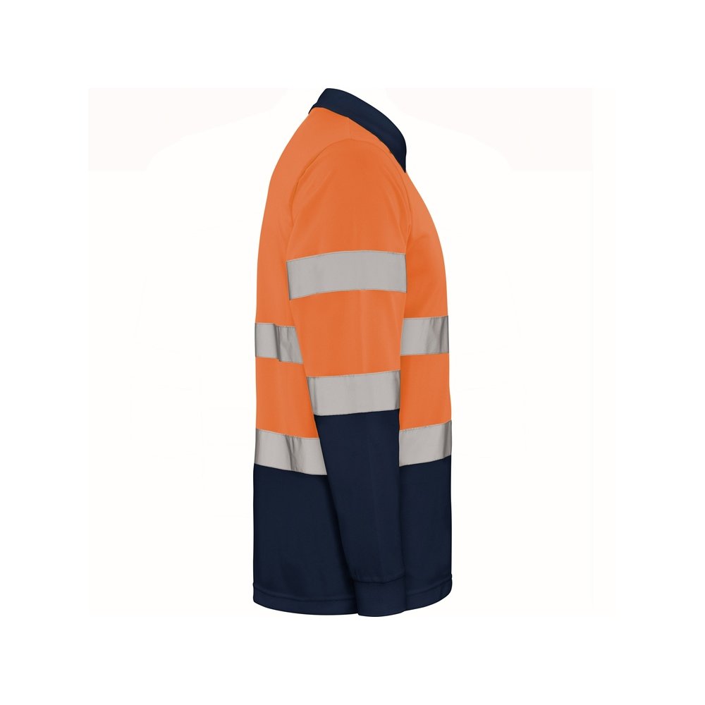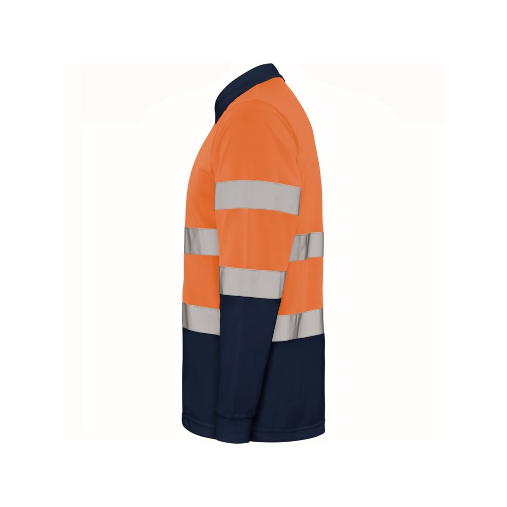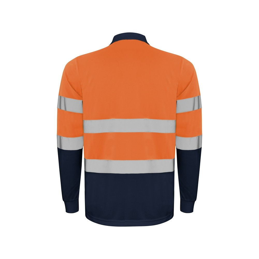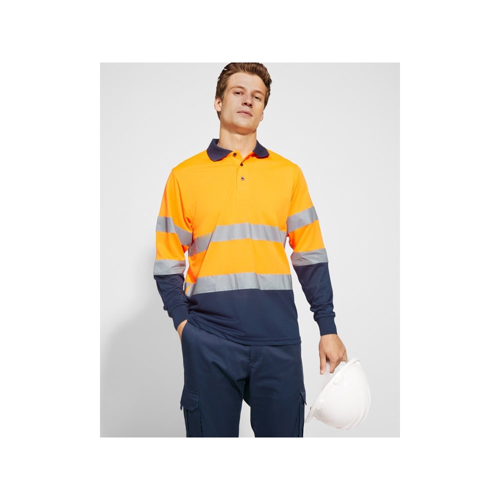 - Техническая рубашка поло с длинными рукавами. Планка на 3 пуговицы. Воротник и манжеты в рубчик 1 x 1. Две горизонтальные светоотражающие полосы на туловище и рукавах. Ткань предотвращает зацепление.