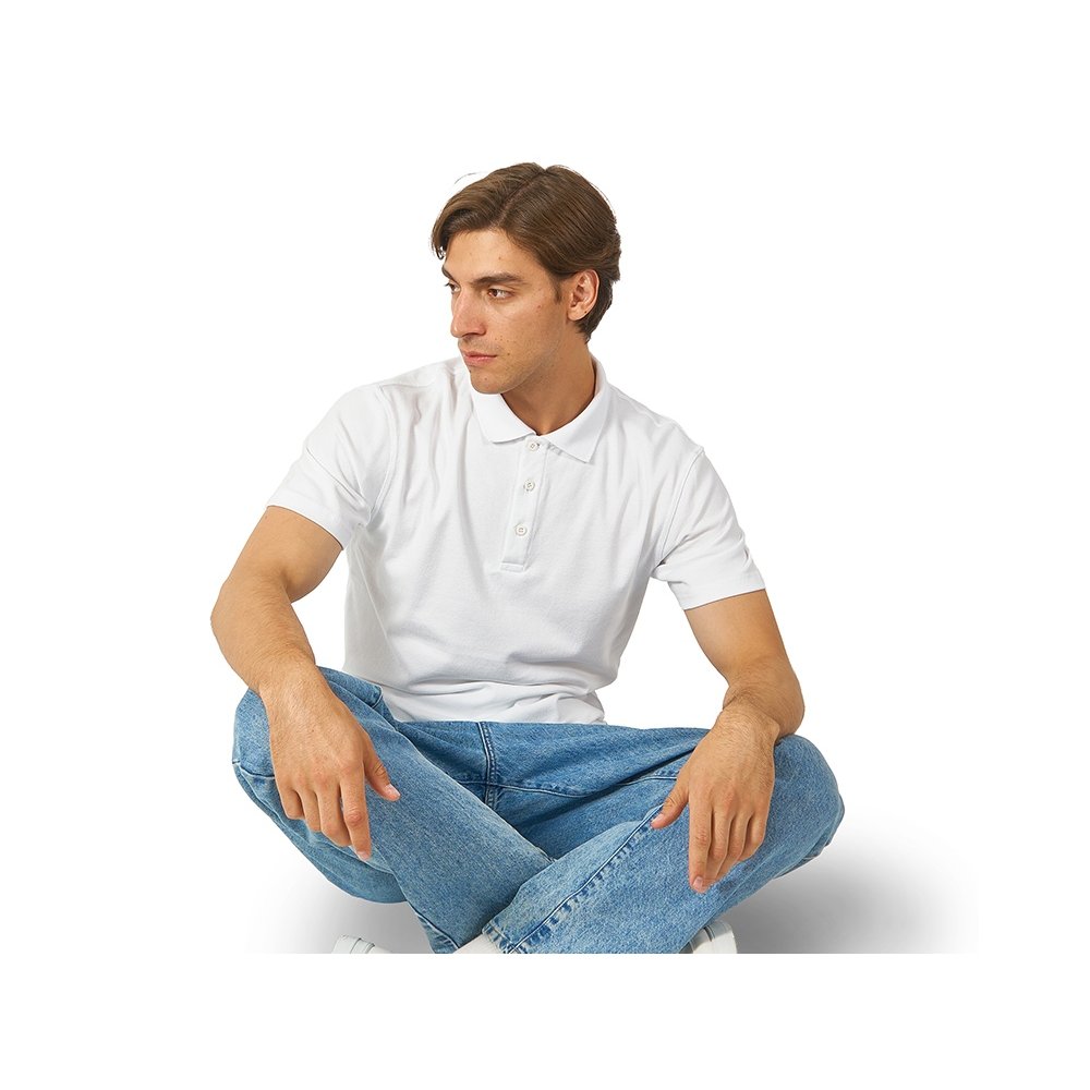 - Поло из плотного пике 200гр, планка с застежкой на 3 пуговицы в тон с гравировкой бренда. Горловина внутри обработана тесьмой из основного полотна, разрезы в боковых швах. Полотно с эластаном для комфортной посадки по фигуре.