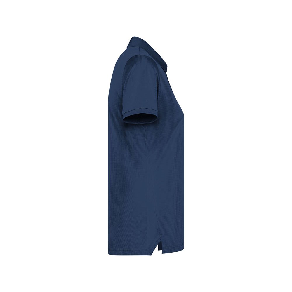 - Женское приталенное полос коротким рукавом из технологичного полотна. Рибовый воротник 1х1, застежка на кнопки. Отстрочка в тон. Рибовые манжеты.