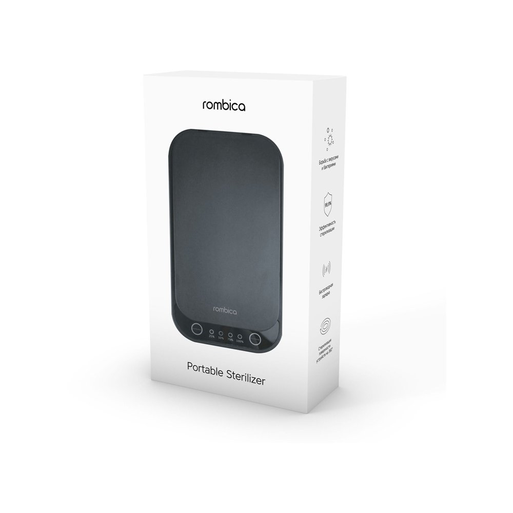 - Портативный стерилизатор с беспроводной зарядкой Rombica Sterilizer Portable. — эффективность стерилизации 99,9%, — борьба с вирусами и бактериями, — стерилизация поверхности устройств на 360°, — беспроводное зарядное устройство, — функция ароматизации, — автоматическая работа. Сенсорное управление. Размер внутренней поверхности: 180 x 100 x 22 мм (7" телефоны). Мощность стерилизации: 2 x 1 Вт. Мощность ароматизации: 1 Вт.