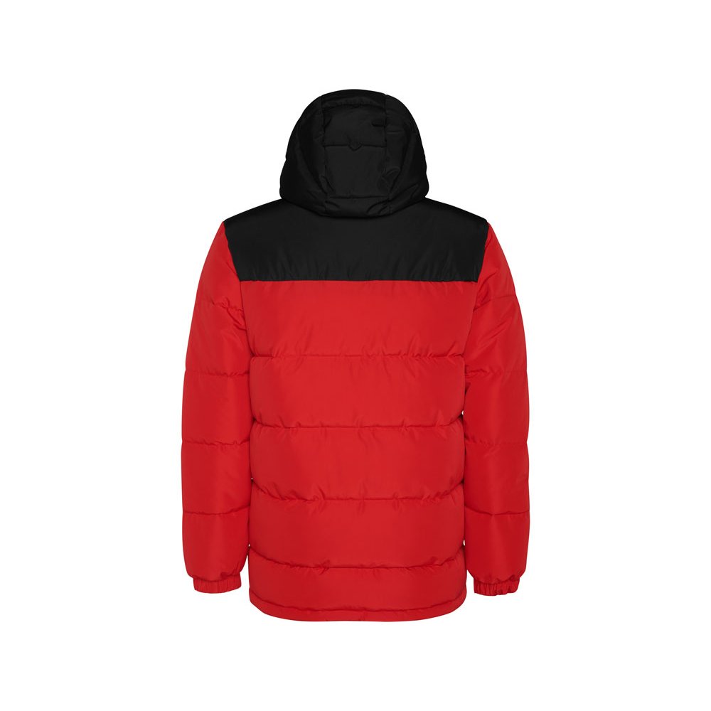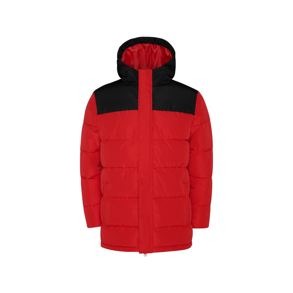 - Утепленная куртка с капюшоном · передняя молния закрывается планкой · защита для подбородка · два боковых кармана на молнии · эластичный манжеты · специальный доступ для нанесения на спинке