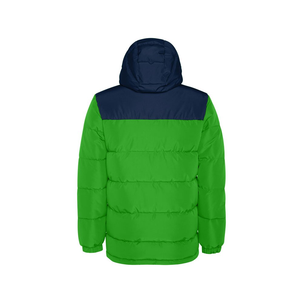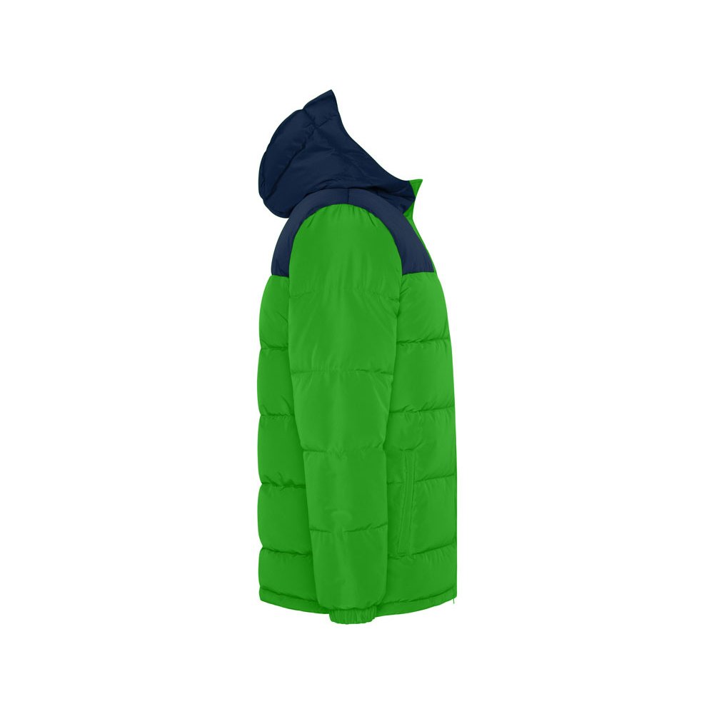 - Утепленная куртка с капюшоном · передняя молния закрывается планкой · защита для подбородка · два боковых кармана на молнии · эластичный манжеты · специальный доступ для нанесения на спинке