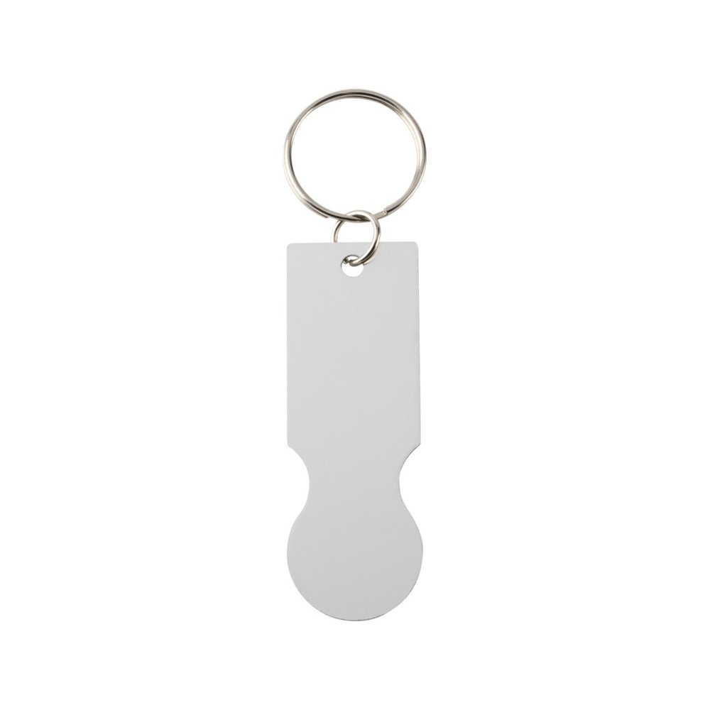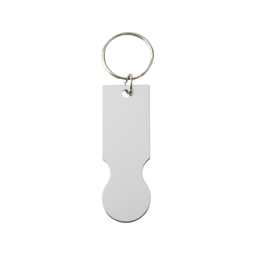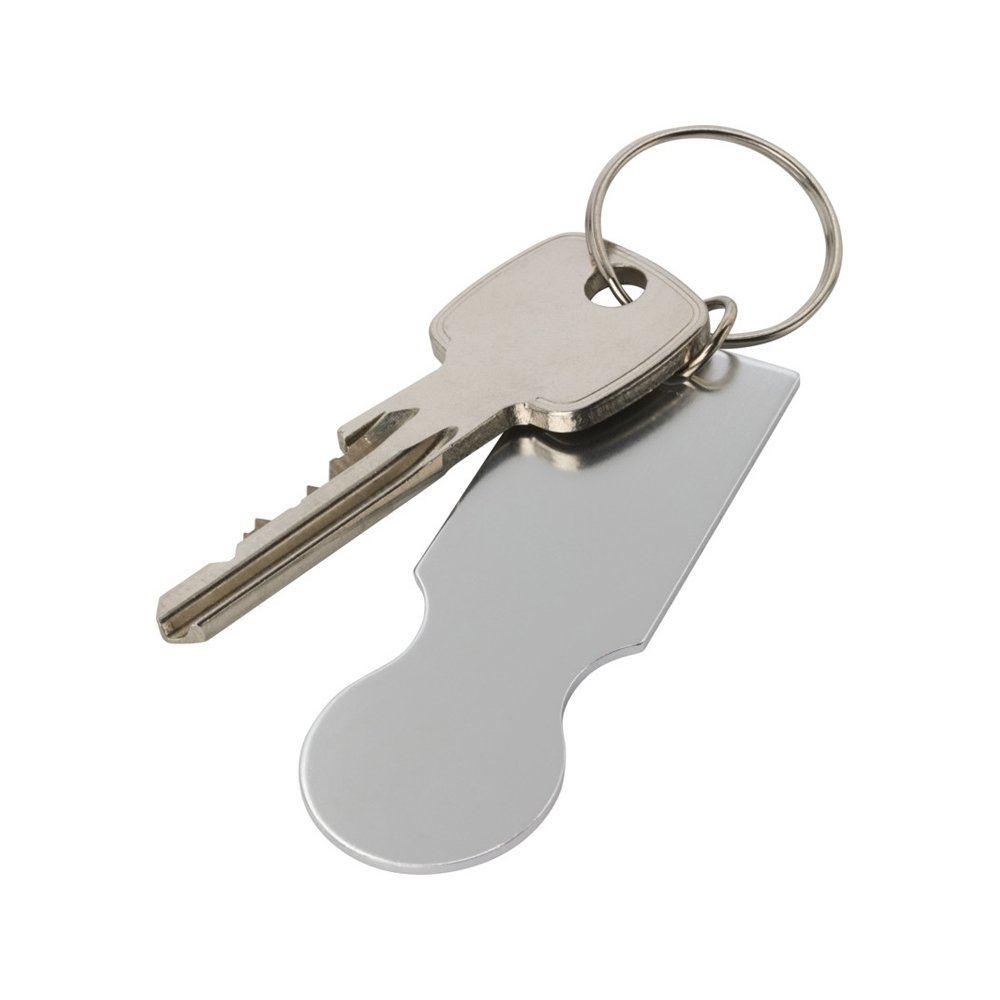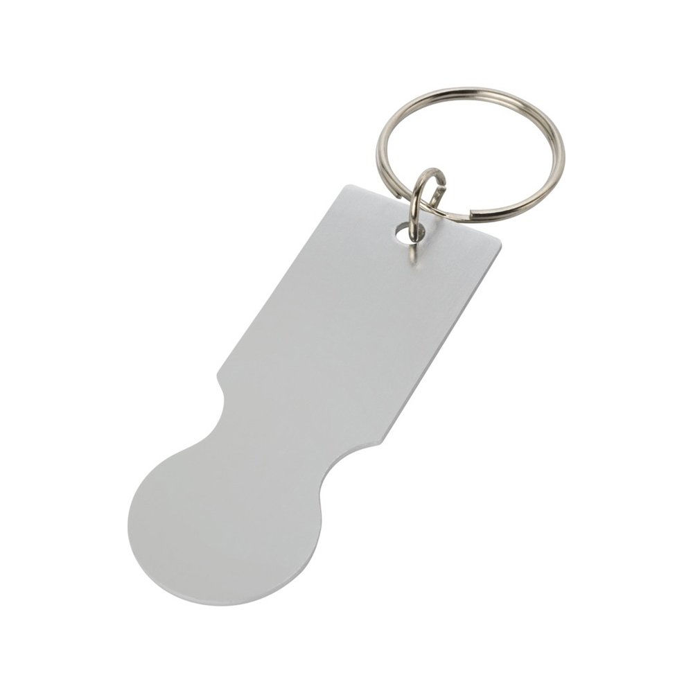 - Металлический брелок для ключей Rhea с монетой для тележки предназначен для большинства тележек супермаркетов, позволяя открывать их без монет или жетонов. Сделан из переработанного алюминия.