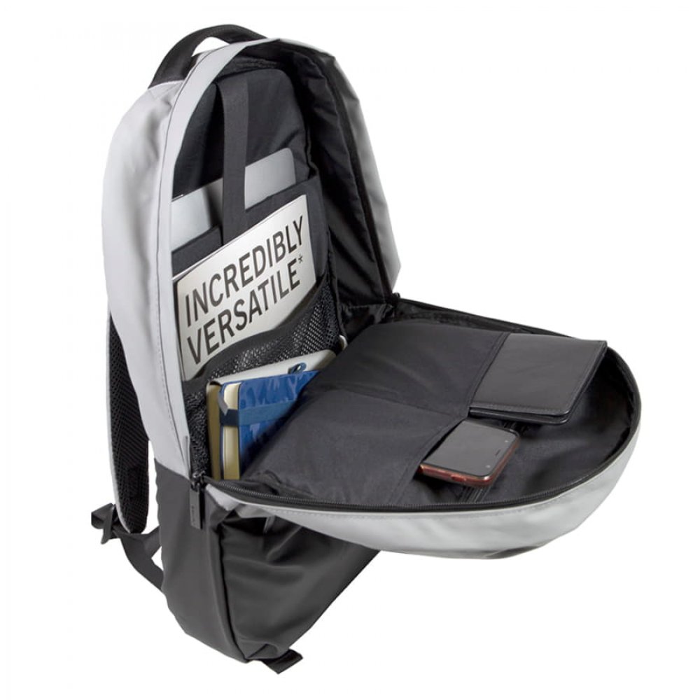 - Основной цвет: близкий к Pantone 423 C, нижняя часть: цвет, близкий к Pantone 426 C · Основная ткань: 100% полиэстер c PU покрытием, подкладка: 100% полиэстер · Объём: 13 литров · Вмещает ноутбук 15,6" Описание: · Прочный и водоотталкивающий материал Anti-scratch · Основной отдел на молнии с двумя бегунками и планкой, защищающей от попадания влаги внутрь · Внешний удобный карман -органайзер на молнии · Внутри укрепленный отдел для ноутбука с защитной тесьмой на липучке · Дополнительные карманы для хранения документов · Эргономичные лямки · Укрепленная ручка рюкзака · Лямки прошиты дополнительными стропами в быстро изнашиваемых местах, которые можно отрегулировать по длине и зафиксировать пластиковыми крепежами · Брендированные металлические пуллеры Bag Fly · Жаккардовый логотип Bag Fly внутри · Картонный ярлык Bag Fly · Упаковка: прозрачный пакет