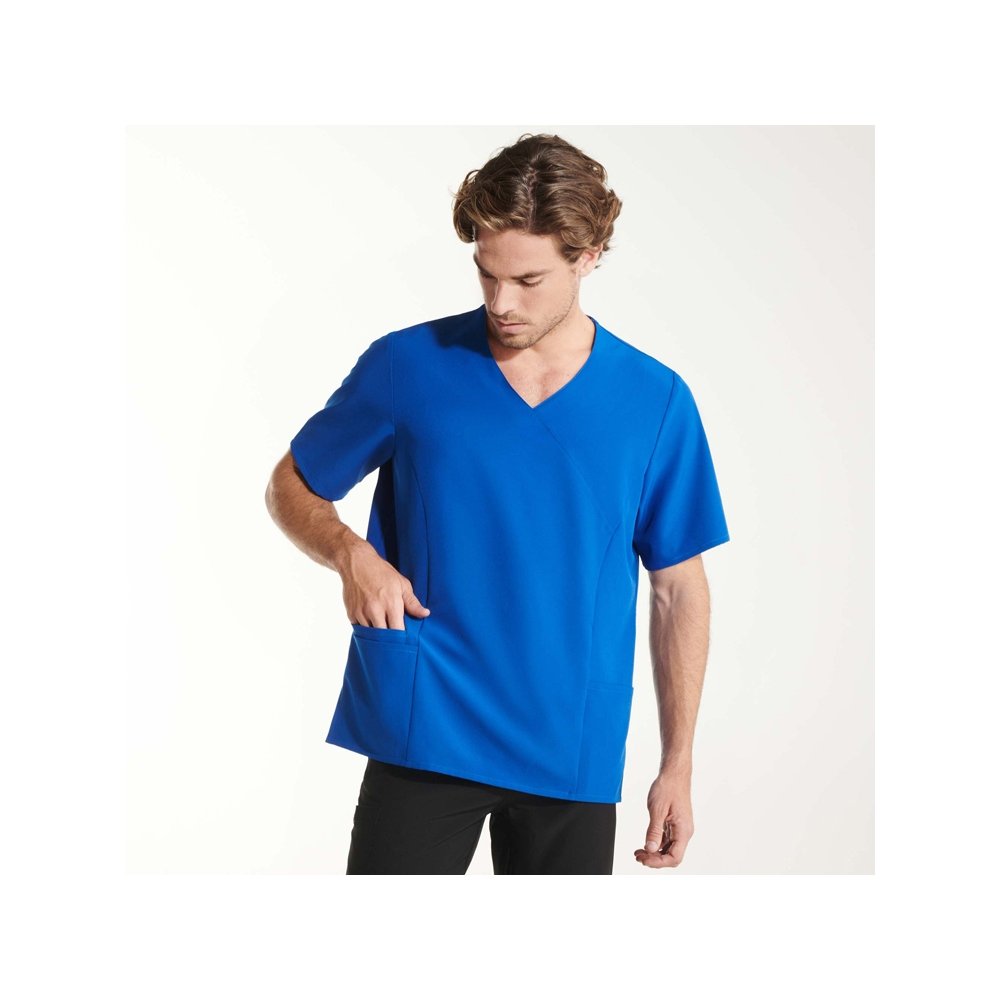 - Мужская рубашка с коротким рукавом. V·образный вырез. Два кармана. Сочетается с брюками Fiber.