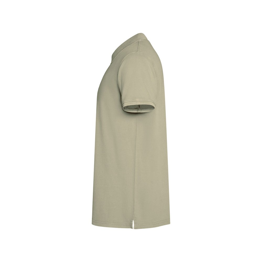- Унисекс поло с коротким рукавом, 100% хлопок, аксидная стирка. Рибовый воротник и манжеты по рукавам, боковые разрезы. Отстрочка в тон по планке