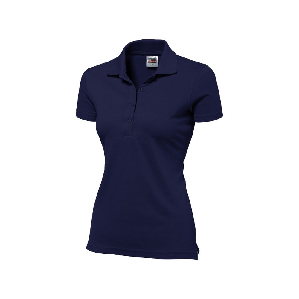 Женская рубашка-поло First. Воротник 1х1. Обшивка внутри воротника. Мужская и детская модели с 2 пуговицами, женская - с 4 пуговицами. Пуговицы с гравировкой в тон. Пике, 100% хлопок. 160 г/м2.