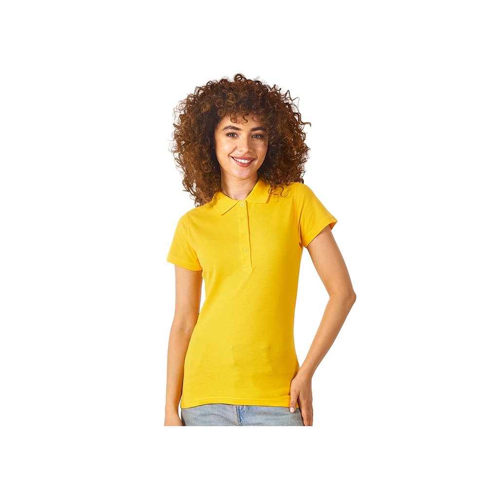 Женская рубашка-поло First. Воротник 1х1. Обшивка внутри воротника. Мужская и детская модели с 2 пуговицами, женская - с 4 пуговицами. Пуговицы с гравировкой в тон. Пике, 100% хлопок. 160 г/м2.