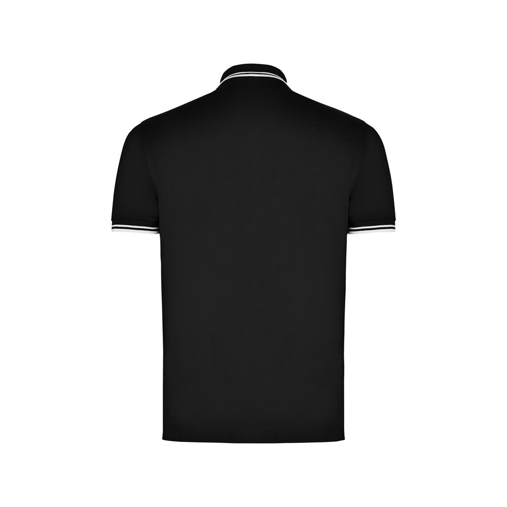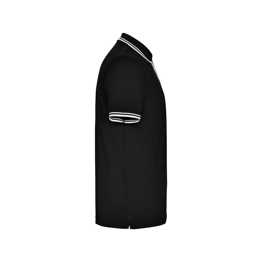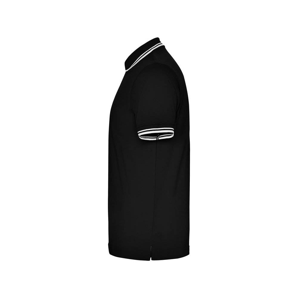 - Поло с коротким рукавом. Воротник и манжеты из риба 1х1 с отделкой двойной контрастной плоской. Внутренняя планка контрастного цвета, застежка на 3 пуговицы. Разрезы в боковых швах. Премиальное плотное пике 230 гр.