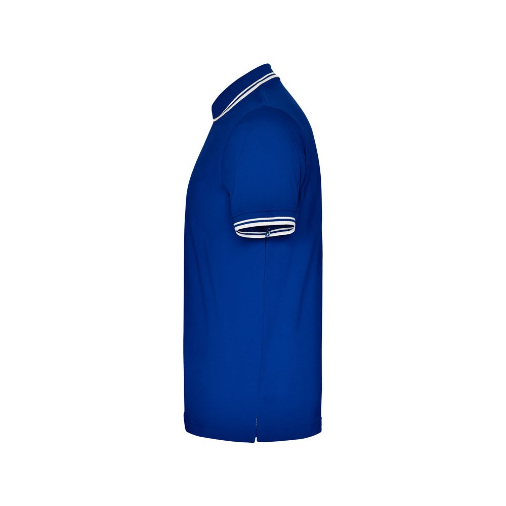 - Поло с коротким рукавом. Воротник и манжеты из риба 1х1 с отделкой двойной контрастной плоской. Внутренняя планка контрастного цвета, застежка на 3 пуговицы. Разрезы в боковых швах. Премиальное плотное пике 230 гр.