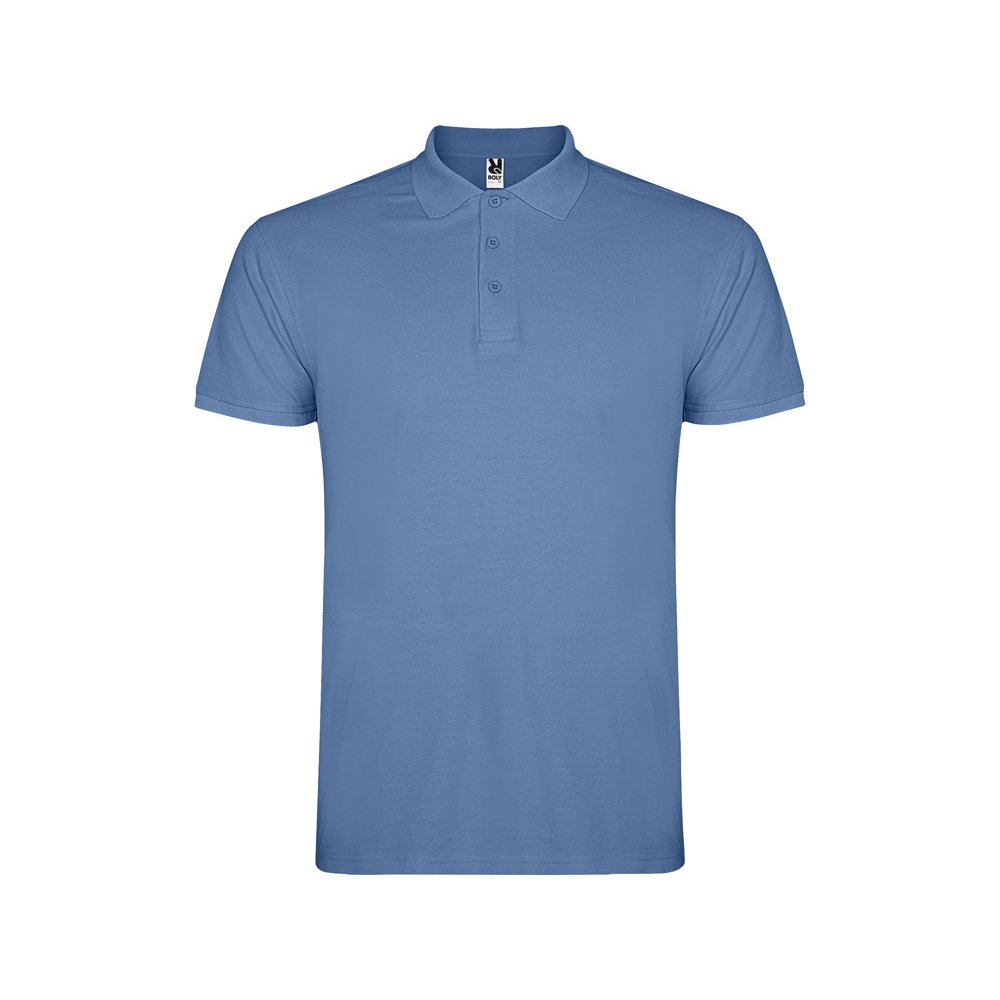 - Поло с коротким рукавом, воротник и манжеты из риба 1х1, отделка горловины внутри тесьмой. Планка застегивается на 3 пуговицы. Разрезы в боковых швах. В ассортименте также представлены аналогичная женская модель "Star".