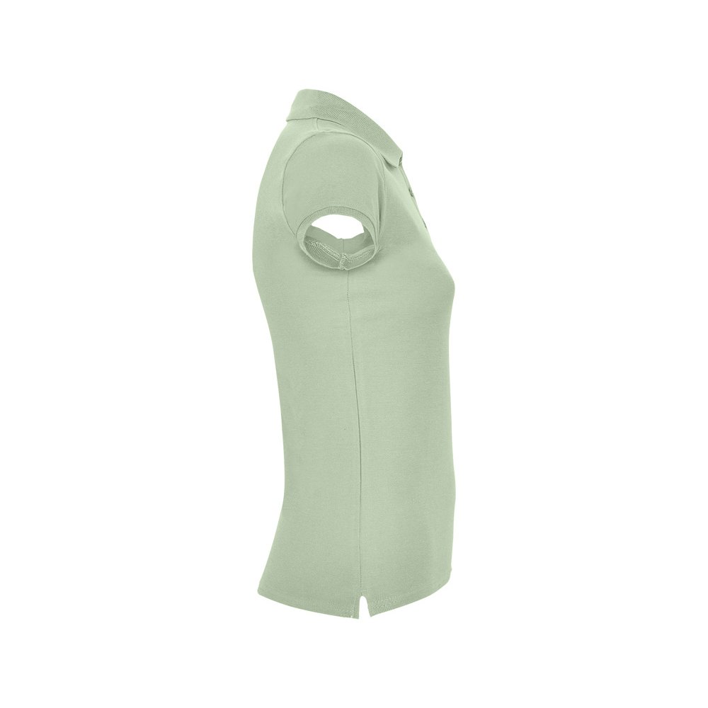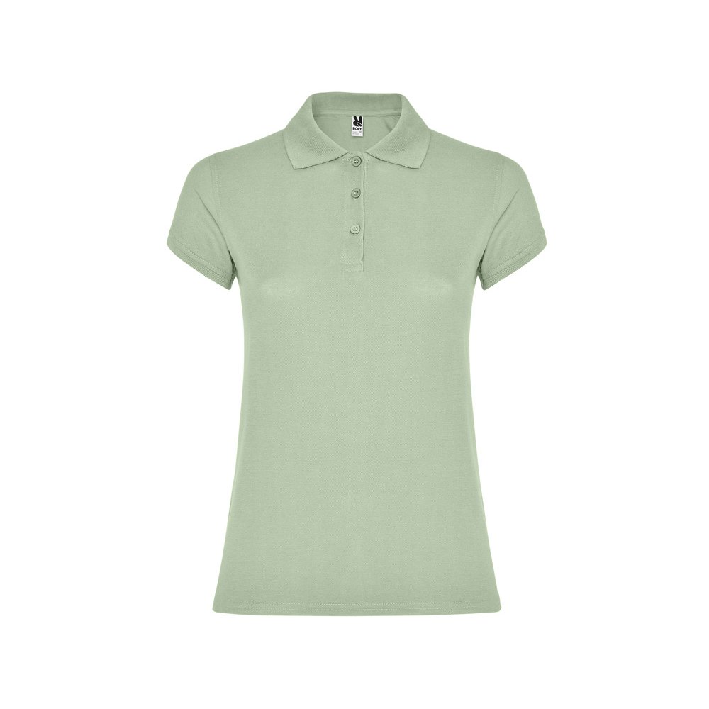 - Поло с коротким рукавом для женщин приталенного силуэта. Воротник и манжеты из риба 1х1, отделка горловины внутри тесьмой. Элегантная планка застегивается на 3 пуговицы. Разрезы в боковых швах. В ассортименте также представлены аналогичные мужская модель "Star".