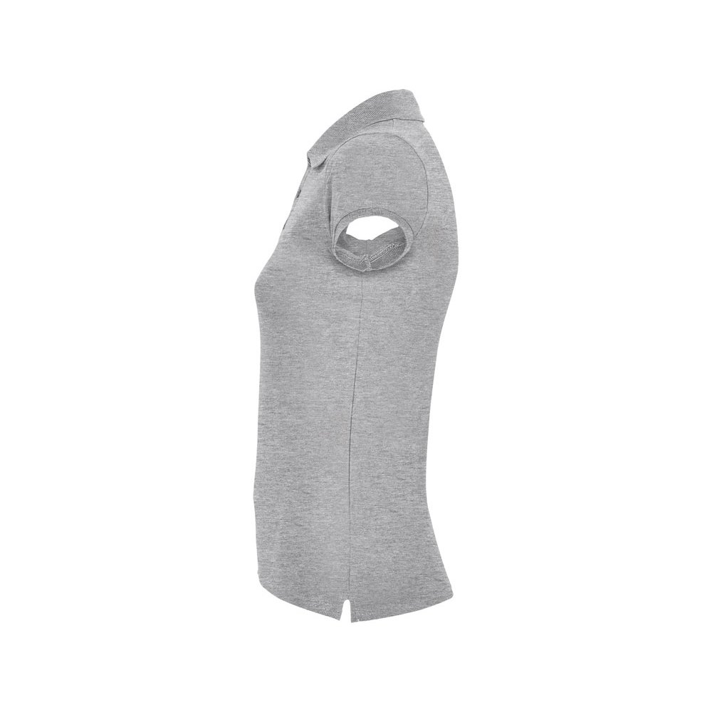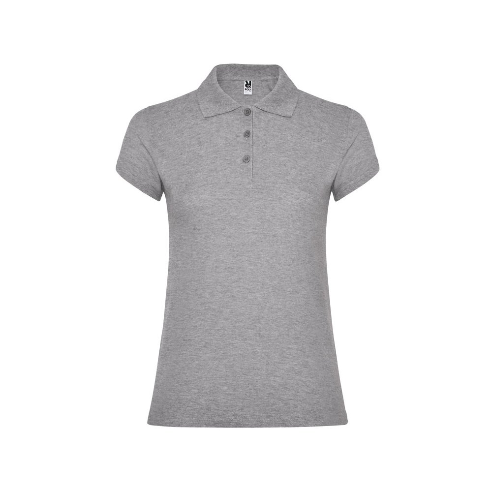 - Поло с коротким рукавом для женщин приталенного силуэта. Воротник и манжеты из риба 1х1, отделка горловины внутри тесьмой. Элегантная планка застегивается на 3 пуговицы. Разрезы в боковых швах. В ассортименте также представлены аналогичные мужская модель "Star".