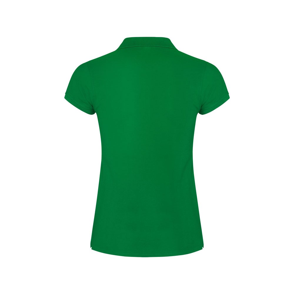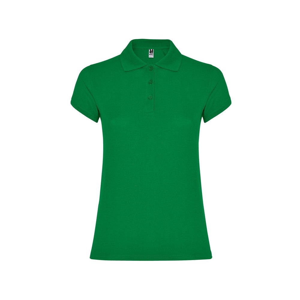 - Поло с коротким рукавом для женщин приталенного силуэта. Воротник и манжеты из риба 1х1, отделка горловины внутри тесьмой. Элегантная планка застегивается на 3 пуговицы. Разрезы в боковых швах. В ассортименте также представлены аналогичные мужская модель "Star".