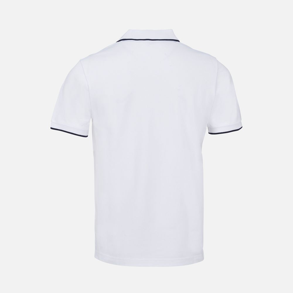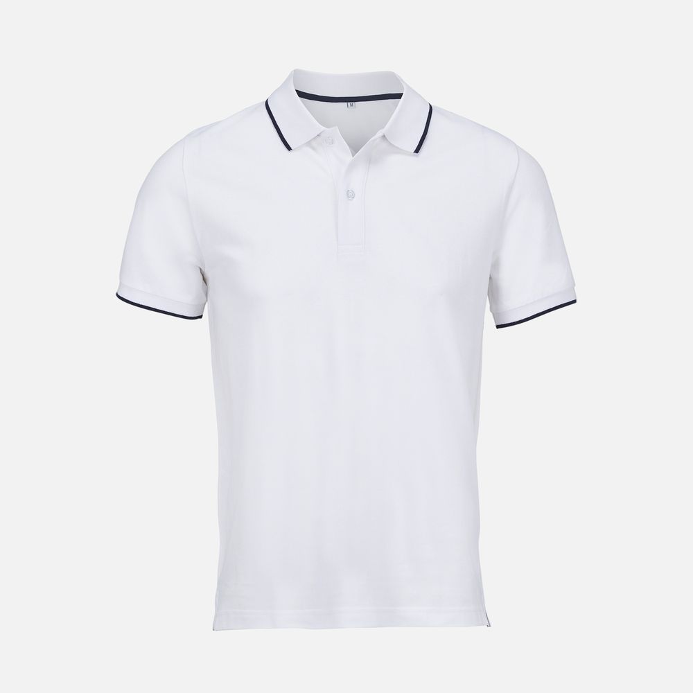 - Рубашка поло средней плотности прямого кроя с контрастными деталями. Подойдет как мужчинам, так и женщинам.