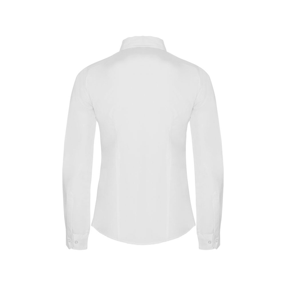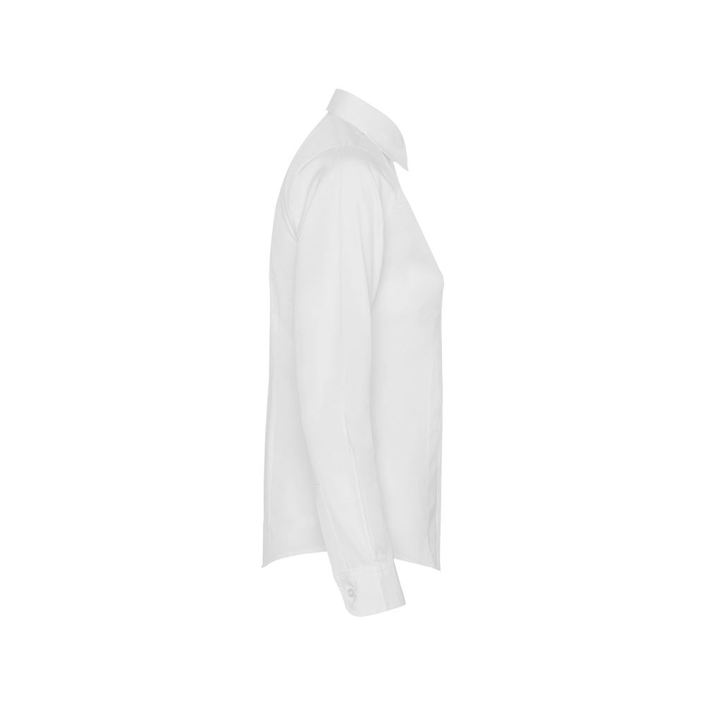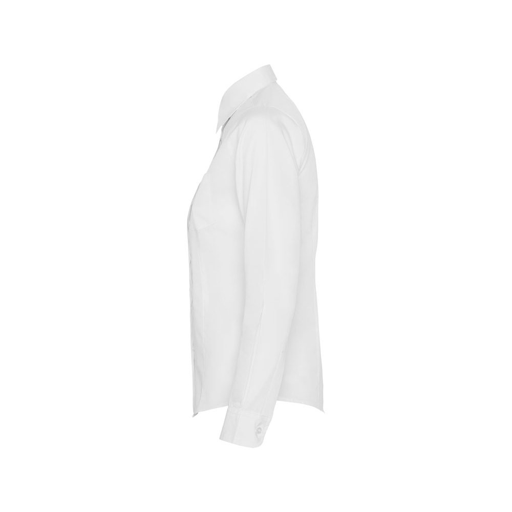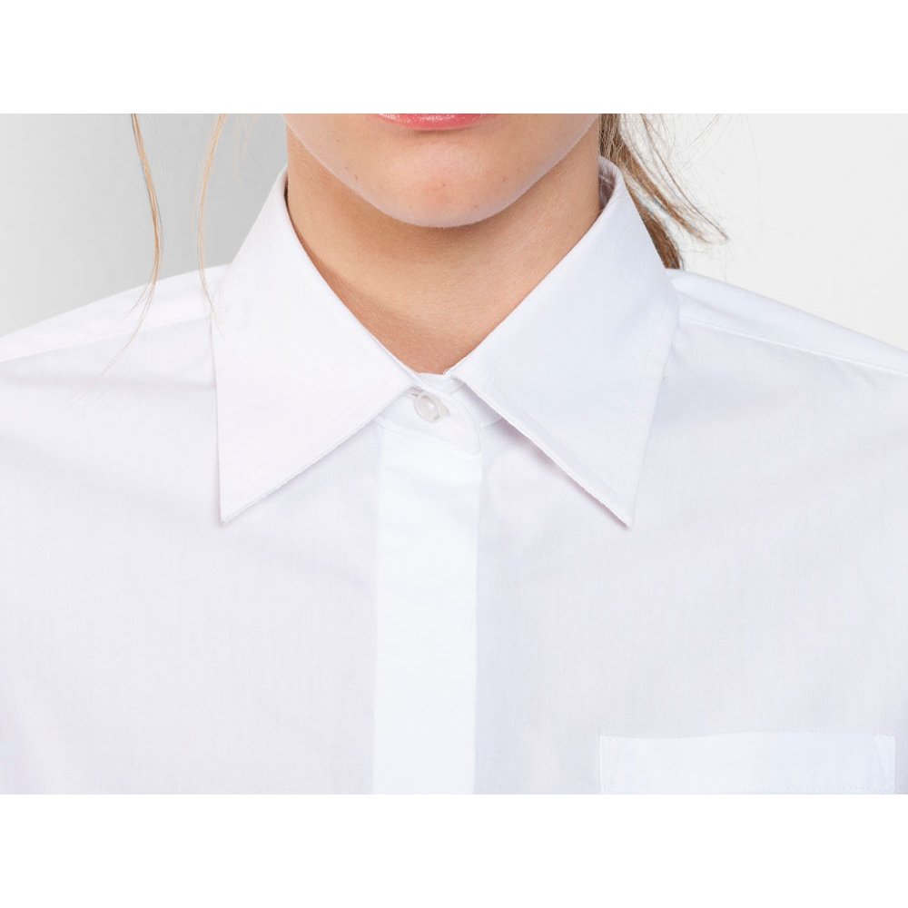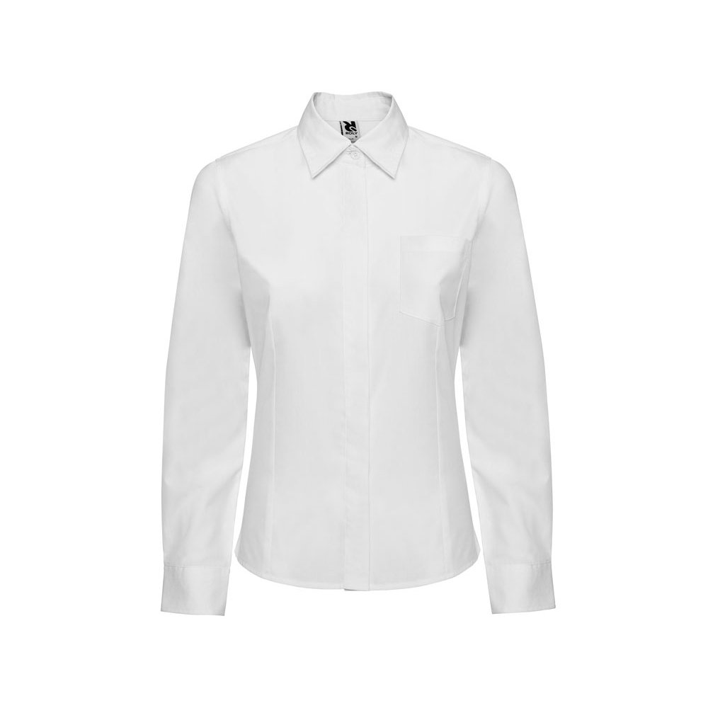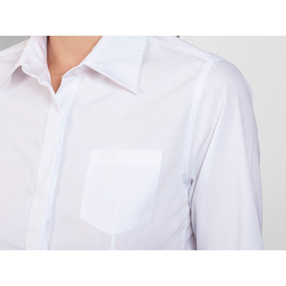 - Рубашка женская прилегающего силуэта с длинным рукавом, вытачки на полочке и спинке. Накладной карман на груди слева, закругленный низ изделия. Планка с потайными пуговицами.