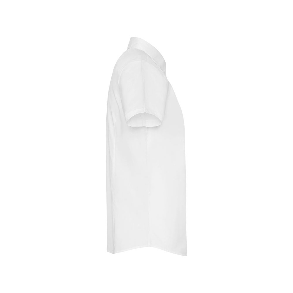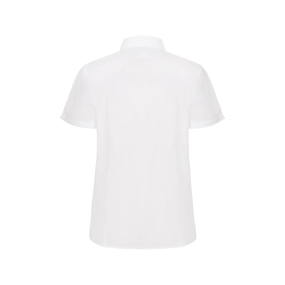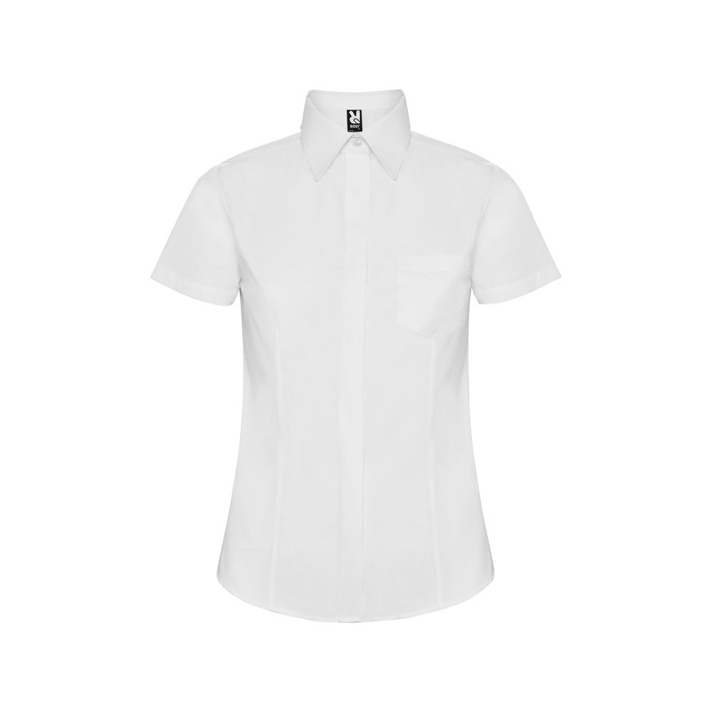 - Рубашка женская прилегающего силуэта с вытачками на полочке и спинке с коротким рукавом. Накладной карман на груди слева, закругленный низ изделия. Планка с потайными пуговицами.