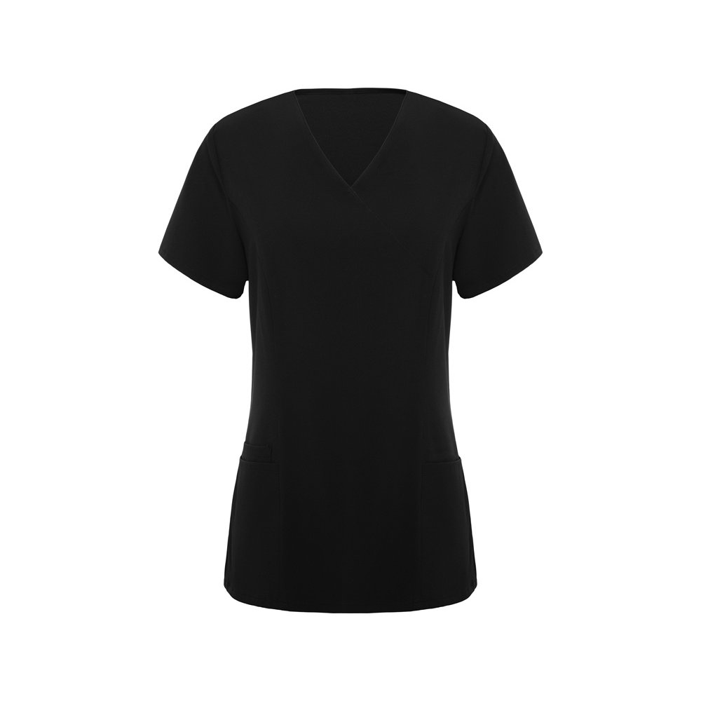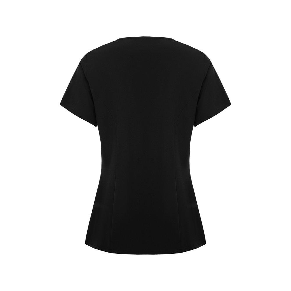 - Женская рубашка с коротким рукавом. V·образный вырез. Два кармана. Сочетается с брюками Fiber.