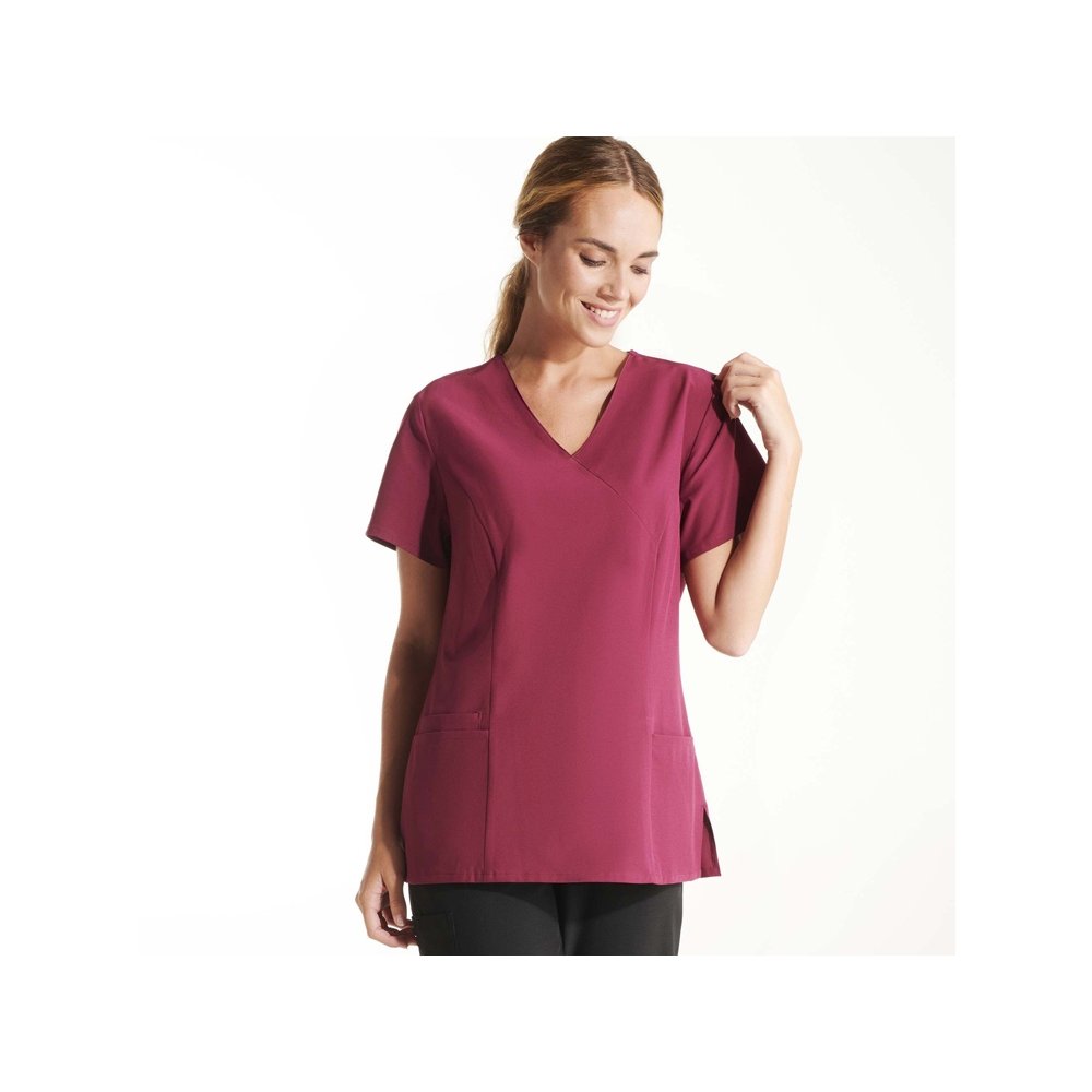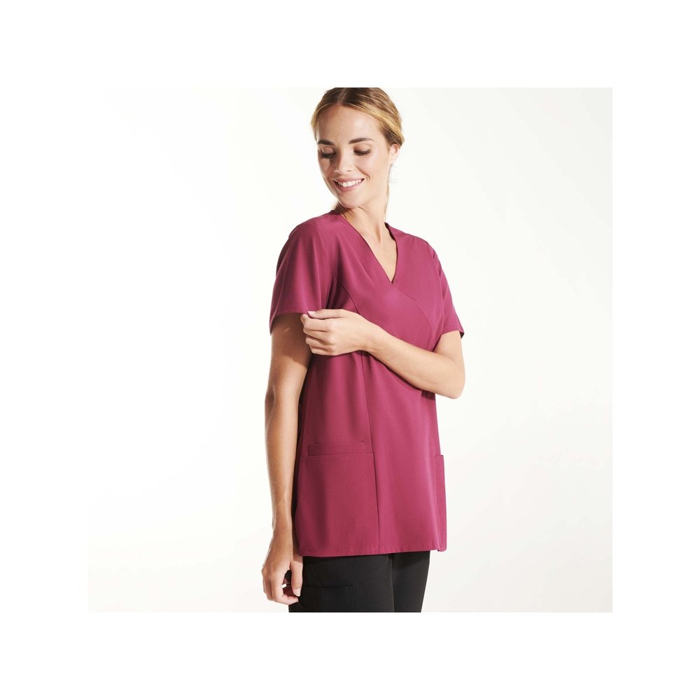 - Женская рубашка с коротким рукавом. V·образный вырез. Два кармана. Сочетается с брюками Fiber.
