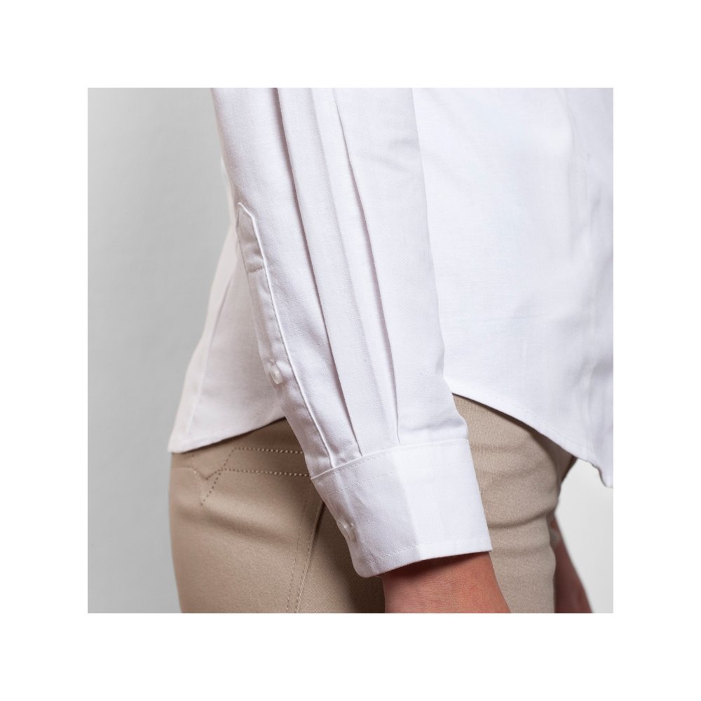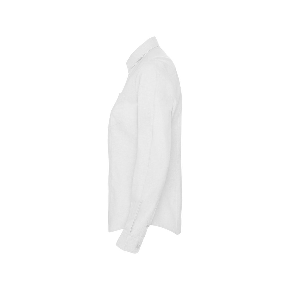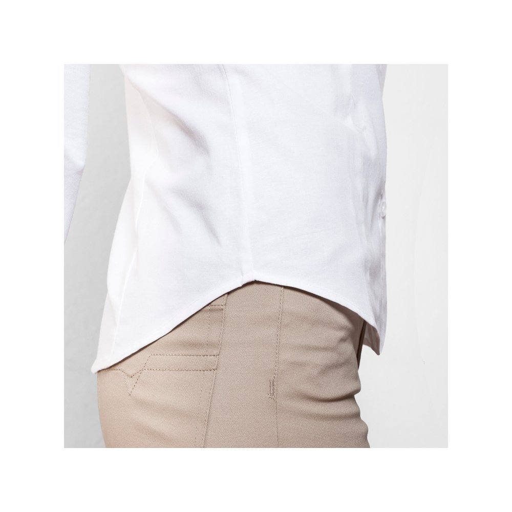 - Женская рубашка с длинным рукавом, накладной карман слева. Планка на пуговицах. Отложной воротник на стойке, могут встречаться изделия, где воротник продублирован пуговицами. Манжета регулируется по ширине с помощью 2-х пуговиц. Кокетка на спинке.