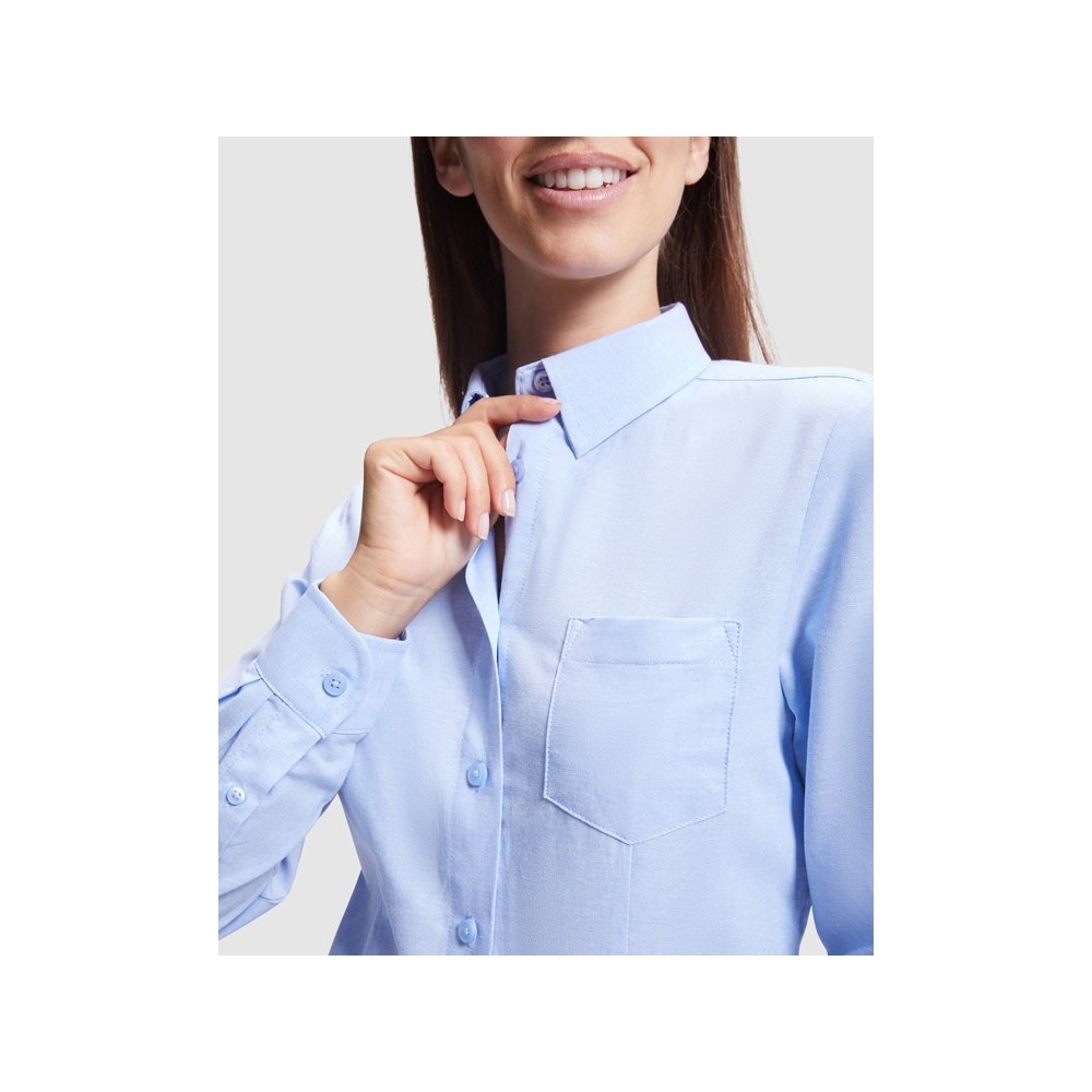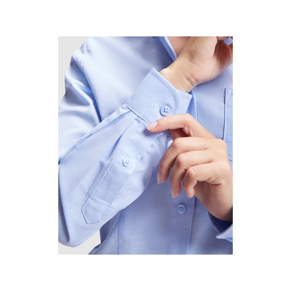 - Женская рубашка с длинным рукавом, накладной карман слева. Планка на пуговицах. Отложной воротник на стойке, могут встречаться изделия, где воротник продублирован пуговицами. Манжета регулируется по ширине с помощью 2-х пуговиц. Кокетка на спинке.
