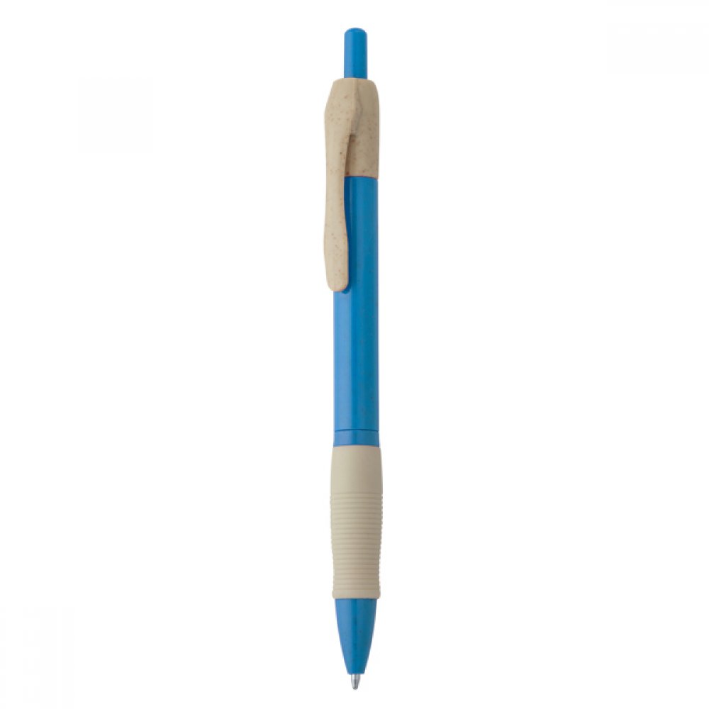 Кнопочная ручка из пшеничного волокна и АБС с мягким захватом. Синие чернила. Кнопка из пшеничного волокна и АБС-пластика.