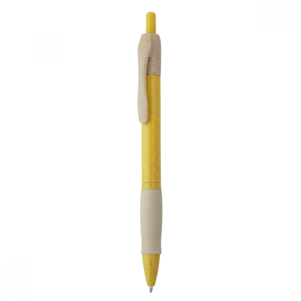 Кнопочная ручка из пшеничного волокна и АБС с мягким захватом. Синие чернила. Кнопка из пшеничного волокна и АБС-пластика.
