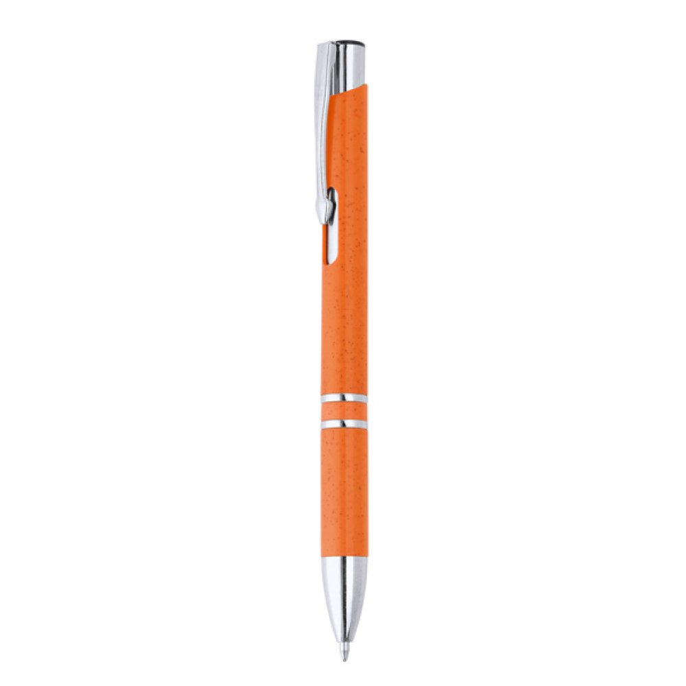 Кнопочная ручка из пшеничного волокна и АБС с серебряными деталями. Джамбо-заправка синими чернилами. Пшеничное волокно и ABS.