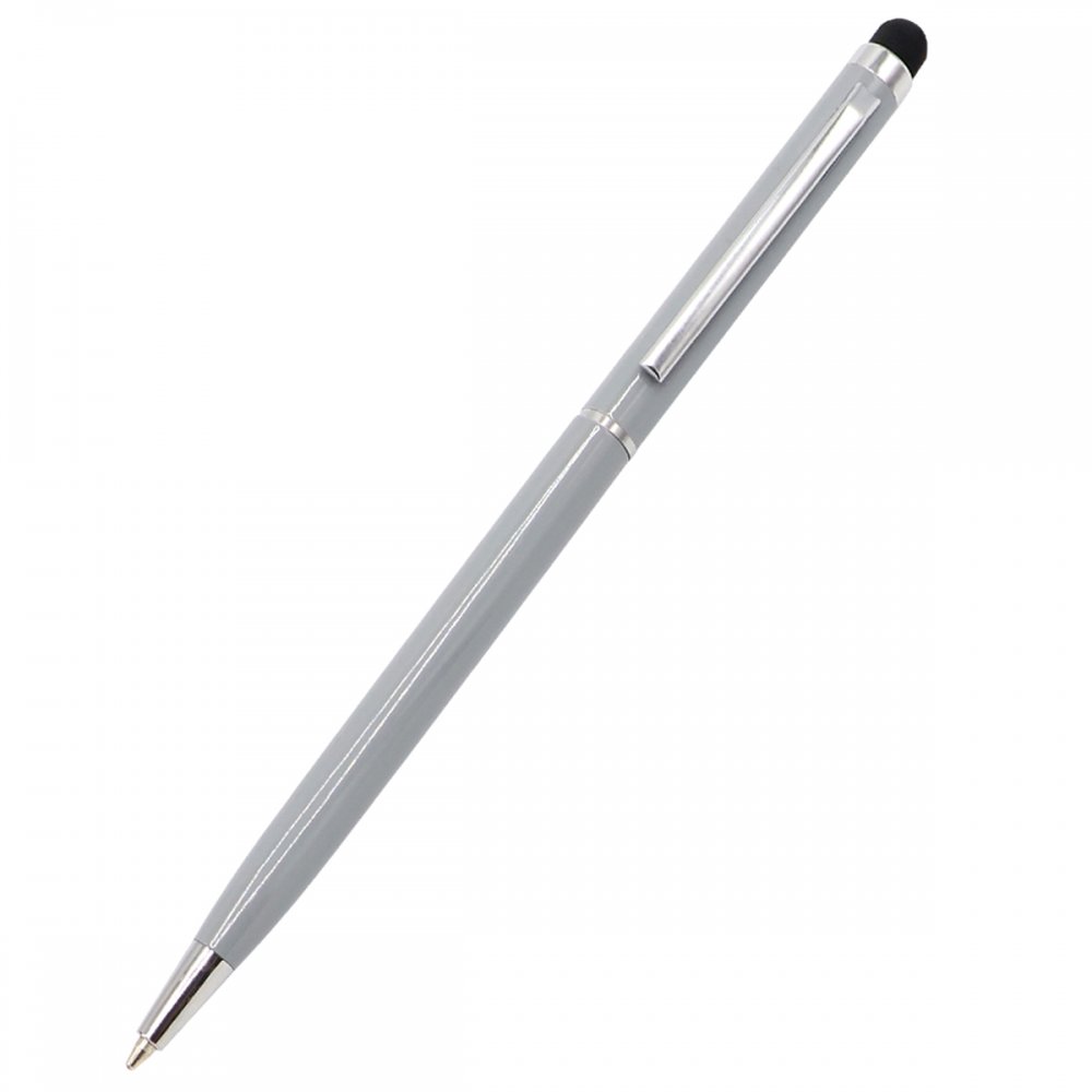 - Ручка Dallas имеет тонкую форму, поворотный корпус и стилус для взаимодействия с портативными устройствами. На корпус можно нанести логотип УФ-печатью и гравировкой. Толщина пишущего узла 1 мм, длина письма рассчитана на 700 м. Цвет по PANTONE® (максимально приближен): Cool Gray 9 C (корпус).