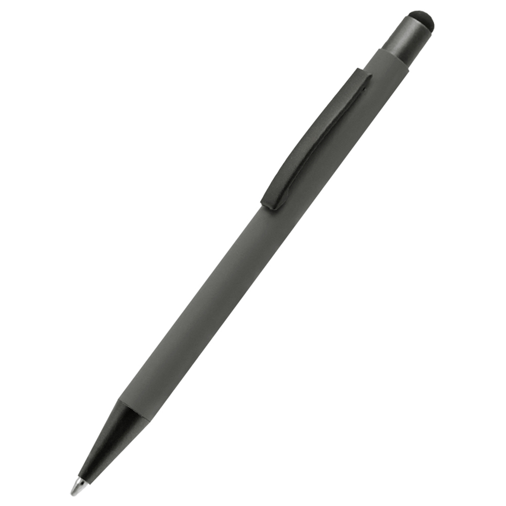- Бархатистая на ощупь ручка Story сотф-тач сделана из металла. Синие чернила, имеет стилус для взаимодействия с портативными устройствами. Толщина пишущего узла 1 мм, длина письма рассчитана на 700 м. Цвет по PANTONE® (максимально приближен): COOL Gray 6C.