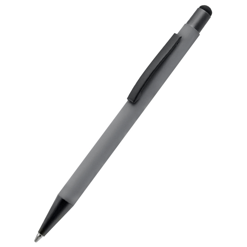 - Бархатистая на ощупь ручка Story сотф-тач сделана из металла. Синие чернила, имеет стилус для взаимодействия с портативными устройствами. Толщина пишущего узла 1 мм, длина письма рассчитана на 700 м. Цвет по PANTONE® (максимально приближен): Cool gray 7 C.