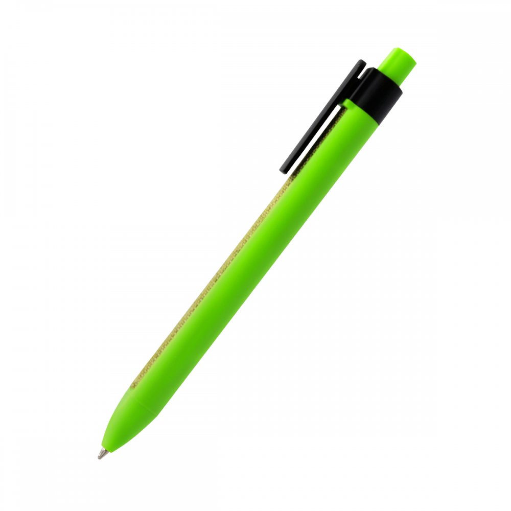 Пластиковая ручка с текстильной вставкой. Абсолютная новинка в мире ручек. Толщина пишущего узла 1 мм, длина письма рассчитана на 700 м. Цвет по PANTONE® (максимально приближен): 7488 C (корпус).