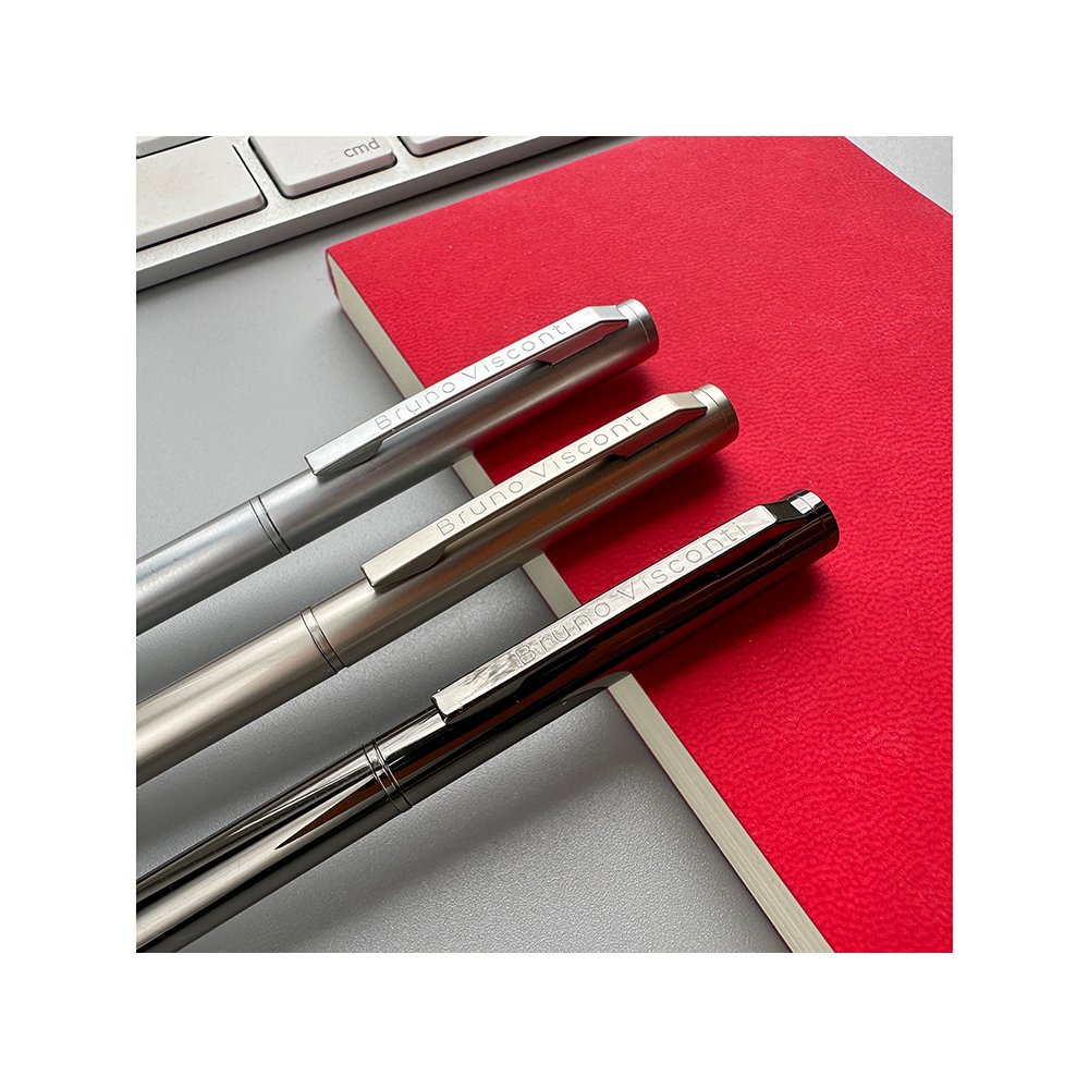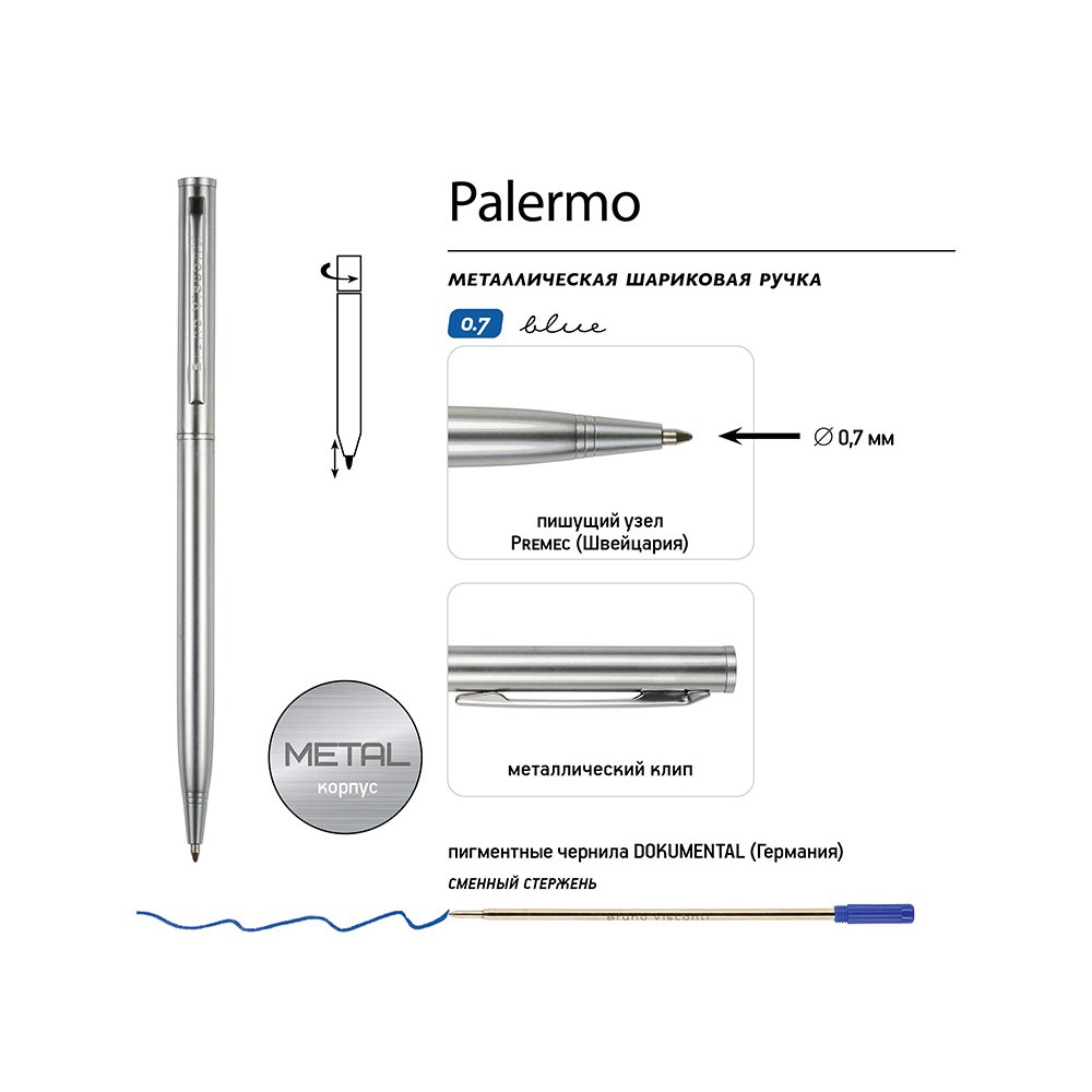 - Автоматическая металлическая ручка "Bruno Visconti" серии "Palermo" однотонного цвета порадует любителей всего изящного и утонченного. Стержень легко выдвигается благодаря поворотному механизму. Синие пигментные чернила Dokumental (Германия) и пишущий узел Premec (Швейцария) обеспечивают качественное и мягкое письмо.