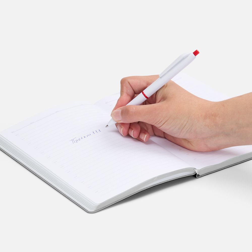 - Классическая модель ручки с акцентными деталями: кольцом и кнопкой, — которые дополнят логотип компании.