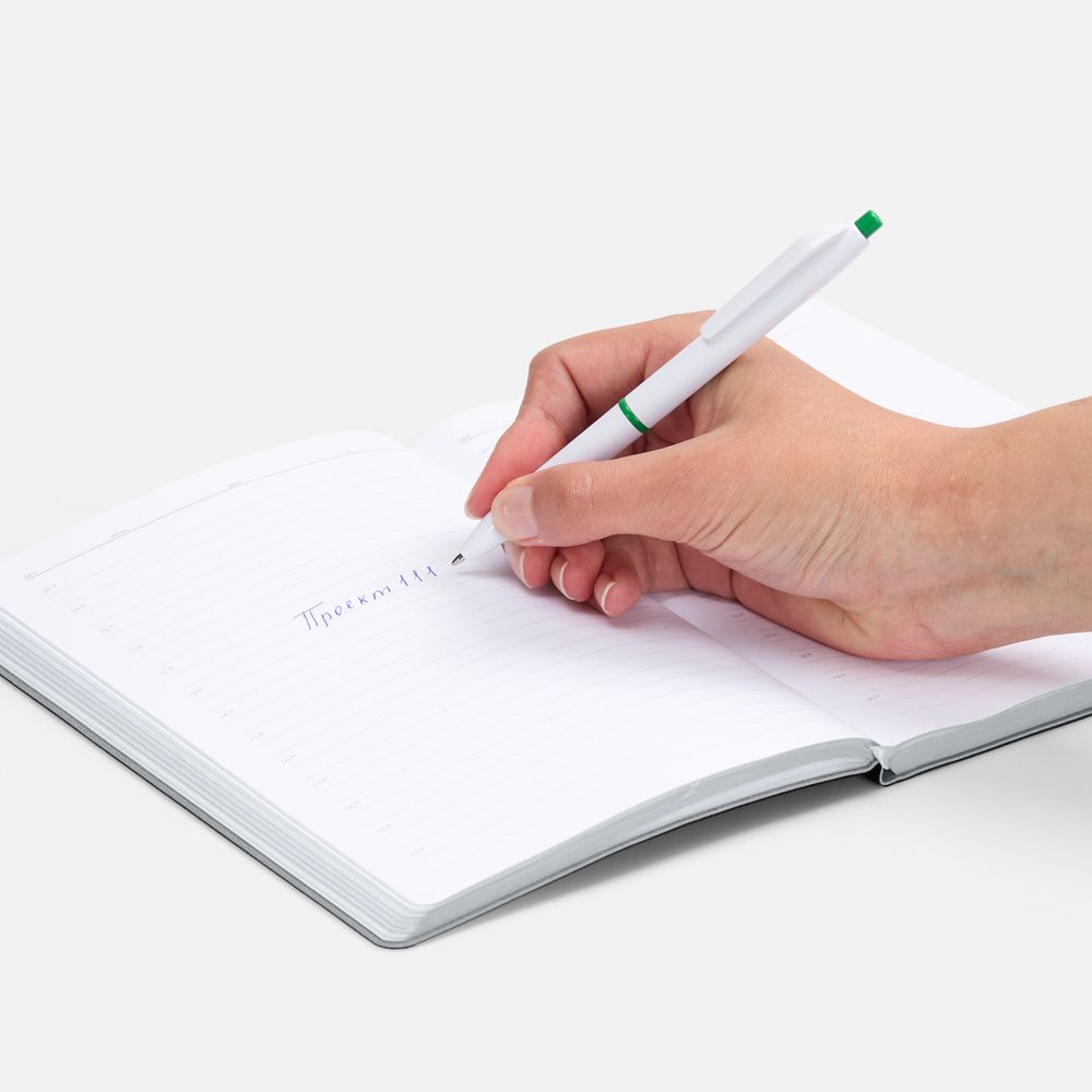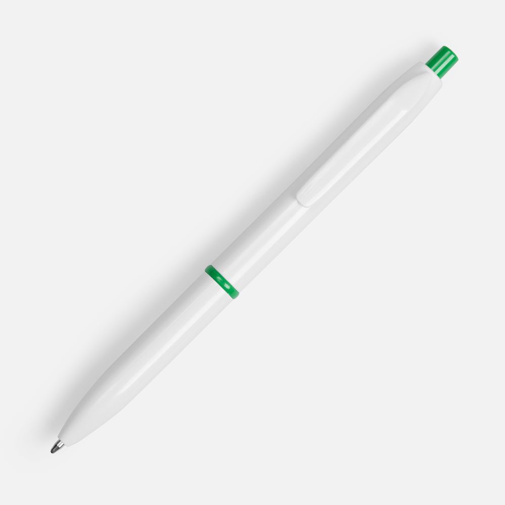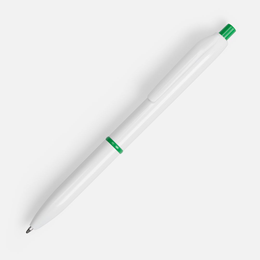- Классическая модель ручки с акцентными деталями: кольцом и кнопкой, — которые дополнят логотип компании.