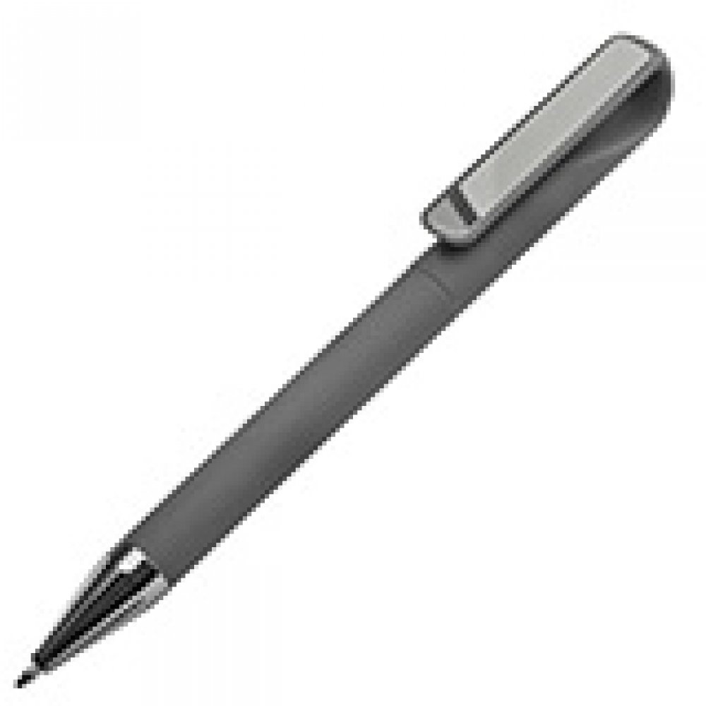 Если вам нравится писать аккуратно и без особого нажима, то модель автоматической шариковой ручки с поворотным механизмом подачи стержня не оставит вас равнодушным. Зеркальная отделка цвета gun на клипе и носике ручки эффектно подчеркивают корпус с покрытием soft touch и придают ручке оригинальность.