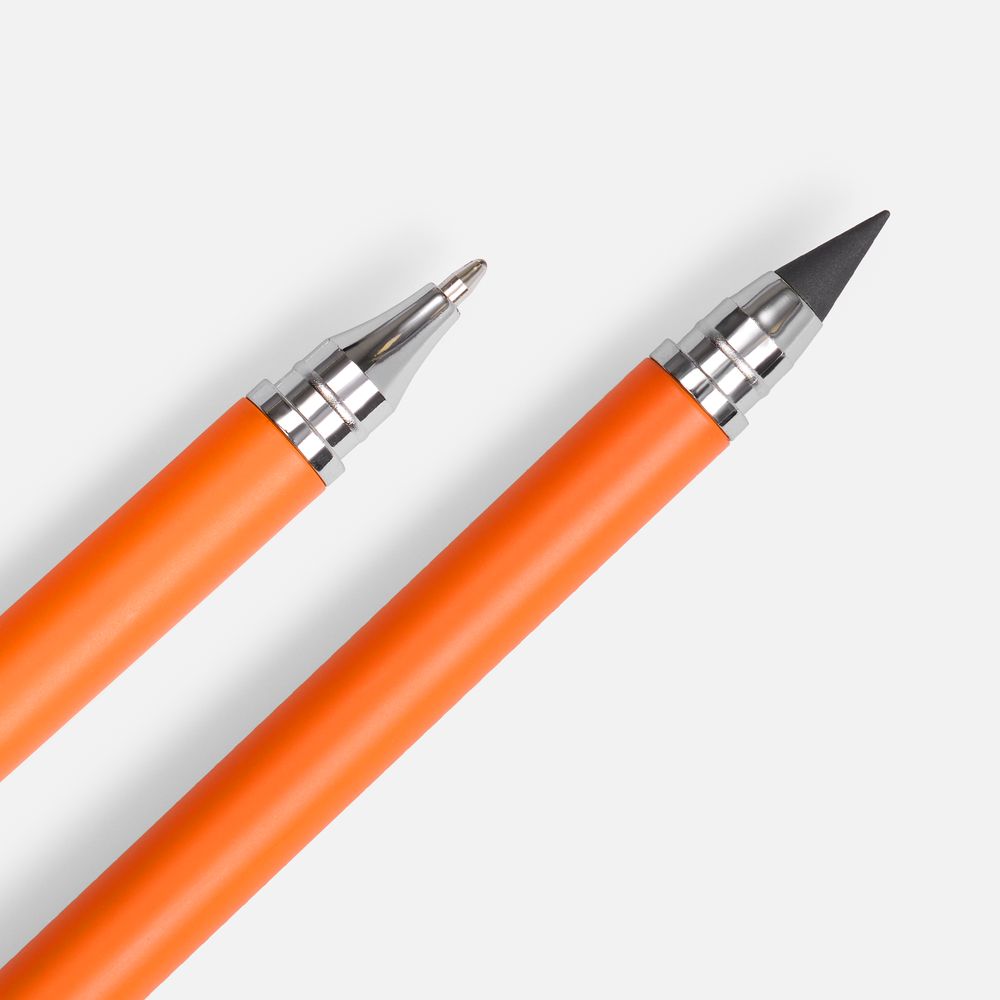 Изготовленный из сплава графита со свинцом долговечный наконечник карандаша не требует заточки, а закончившийся стержень в ручке легко заменить. Оба наконечника закрываются защитными колпачками.