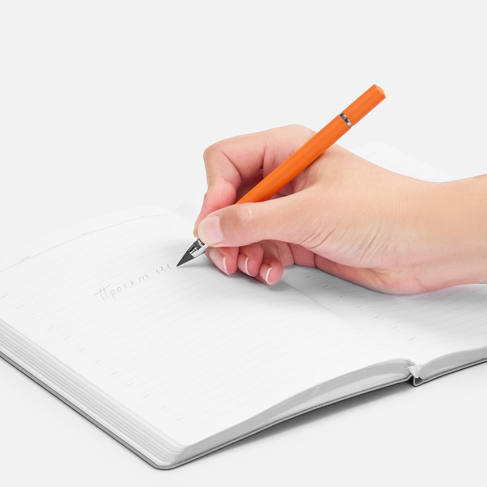 Изготовленный из сплава графита со свинцом долговечный наконечник карандаша не требует заточки, а закончившийся стержень в ручке легко заменить. Оба наконечника закрываются защитными колпачками.- Механизм ручки: колпачок.